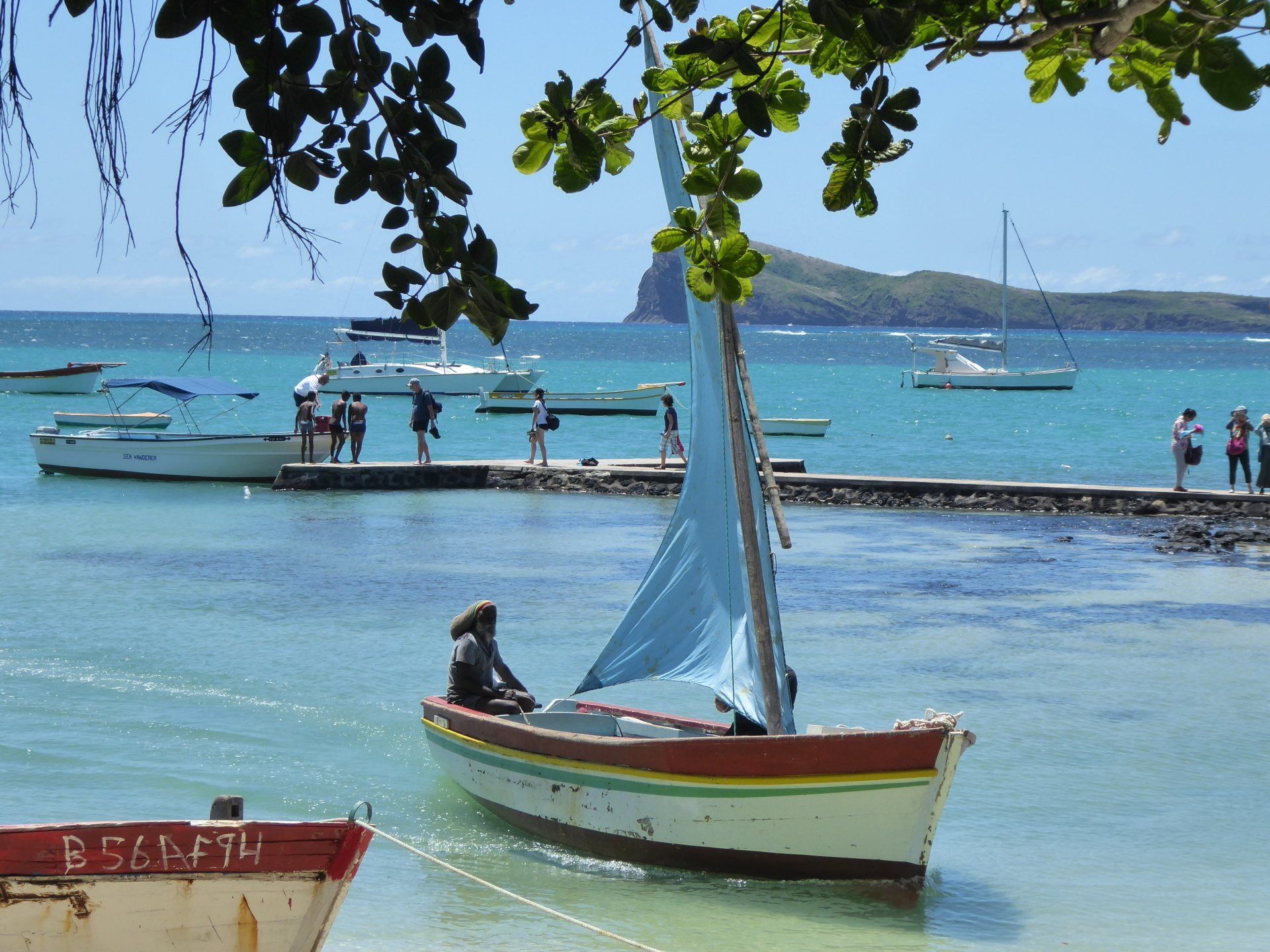 Unerwartet plötzlich öffnet sich der Blick wieder auf das Meer, die vertäuten Fischerboote und die ferne Insel Coin de Mire. Der eigentliche Blickfang dieses Plätzchens ist allerdings eine kleine, leuchtend rote Kirche - ein Wahrzeichen von Mauritius, die pittoreske Kapelle Notre Dame Auxiliatrice.