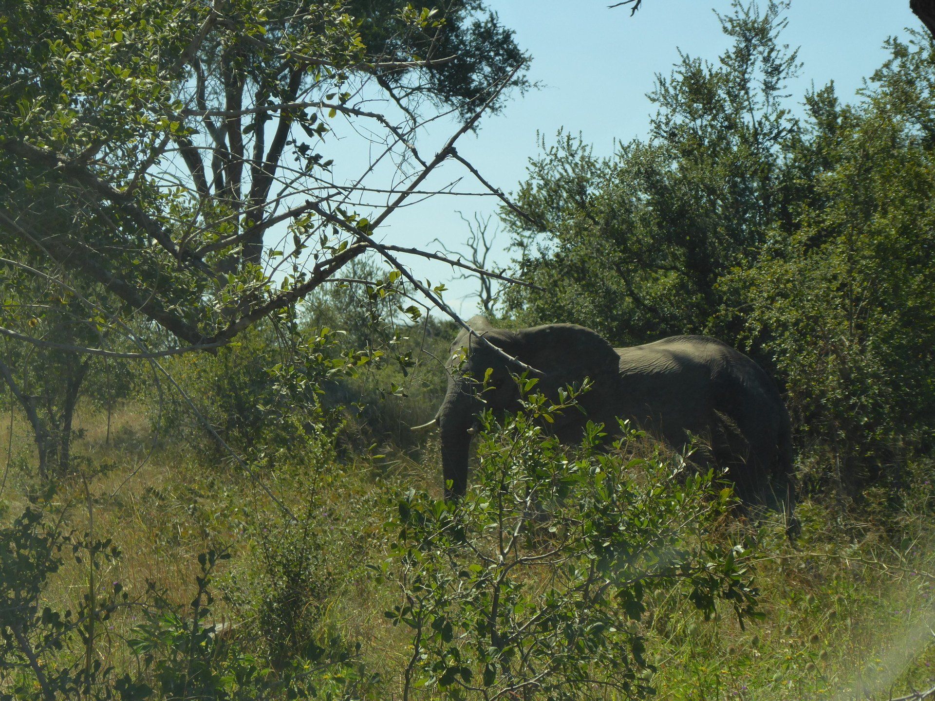 Dann müssen wir uns auch schon wieder auf den Rückweg machen. Am Parkplatz werden wir von einem Tourguide angesprochen, wir sollten vorsichtig sein, da vorne wäre gerade ein recht aggressiver Elefant durchgelaufen. Ob er uns zum Hotel begleiten soll? Schon wieder so ein Tourinepp? Nein danke, wir kommen alleine zurecht. Ein paar Meter weiter holt er uns dann aber nochmals ein. Ob wir nicht doch lieber mit den anderen Guides zum Hotel fahren wollen – er würde sich echt Sorgen machen – und wir müssten auch nichts bezahlen dafür. Hm, nun erinnern wir uns an die Warnung von unserem Touristenpolizisten und sind doch etwas verunsichert. Also ins Safariauto gestiegen und das unerwartete Taxi in Anspruch genommen. Unterwegs haben wir dann tatsächlich den Eli im Gebüsch gesehen. Und auch wenn der Fahrer kein Geld wollte, so haben wir der ganzen Truppe, die wegen uns ja ziemlich zusammenrücken mussten, doch noch ein paar Dollar in die Hand gedrückt. Und natürlich ist die Freude darüber gross.