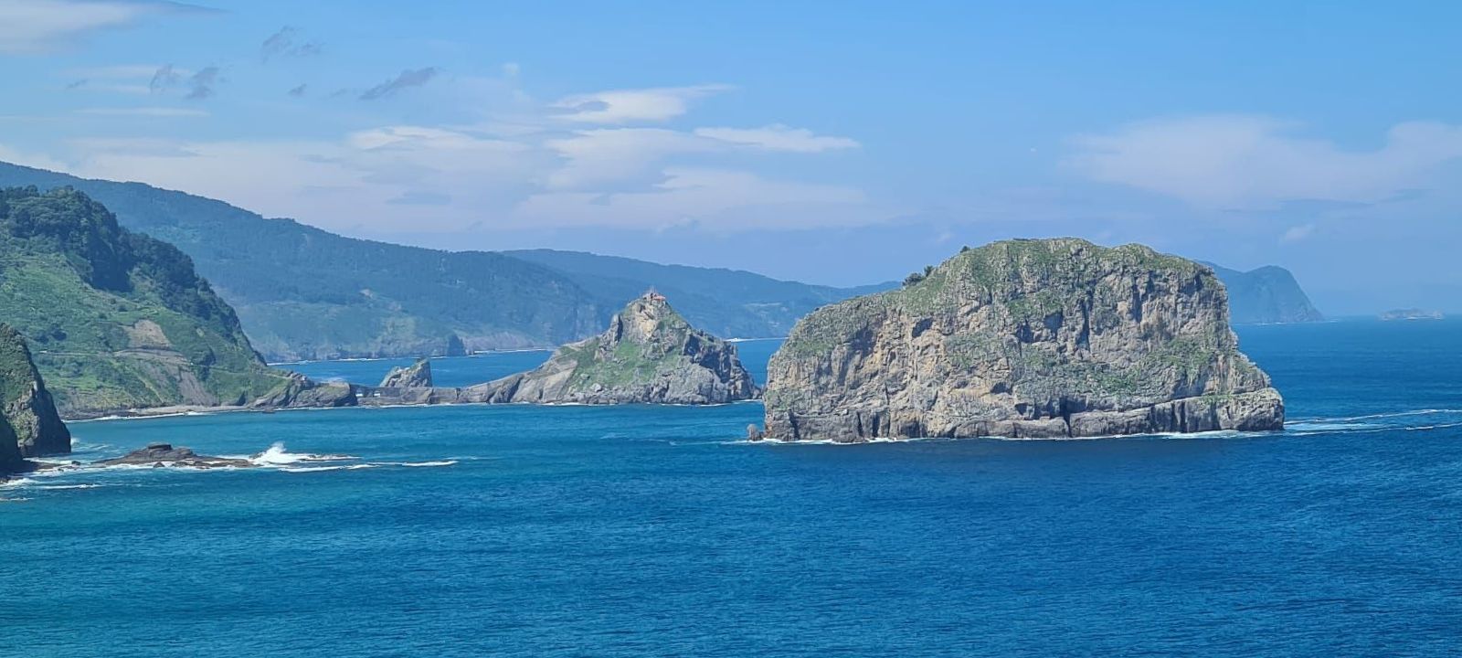 Geplant war, am Freitag mit der Schwebefähre ganz früh von Portugalete nach Getxo überzusetzen. Dann gleich weiter zum Kloster San Juan de Gaztelugatxe zu fahren. Das Kloster wollen wir auf jeden Fall sehen, doch ist die Parkplatzsituation vor Ort - sagen wir mal - unübersichtlich. Obwohl ich mega viel recherchiert habe, konnte ich nicht rausfinden, ob und wieviele Parkplätze es für Camper gibt. Deshalb wollte ich da schon ganz früh morgens dort sein, in der Hoffnung einen Parkplatz zu bekommen. Schon daheim habe ich vorsorglich ein Bakio einen Stellplatz reserviert - der einzige vernünftige Stellplatz dort in der Nähe. Sollte das mit dem frühen Parkplatz nichts werden, hätte ich entlang der Strasse noch zwei Aussichtsparkplätze ausgesucht, die gehen müssten. Von dort aus müsste man dann allerdings mit dem Bike fahren. Eine andere Möglichkeit wäre noch vom Stellplatz aus mit dem Bike zum Kloster zu fahren. Ich habe aber keine Ahnung, wie stark befahren die Strassen sind. Es gibt auch noch eine "Piste" zum Kloster, doch da ist nicht ersichtlich, ob die durchgängig befahrbar ist. Und einen Bus gibt es wohl auch - der fährt alle paar Stunden..... . Dort oben gibt es auch noch einen Leuchtturm, den ich auch gerne anschauen würde. Also ein Plan sieht anders aus und irgendwie mögen wir solche Situationen überhaupt nicht. Auf Samstag wollte ich das Kloster eigentlich nicht besuchen, weil dann wahrscheinlich noch mehr Besucher da sein werden wie an einem Freitag. So sieht also die "Planung" mit allen Varianten aus.