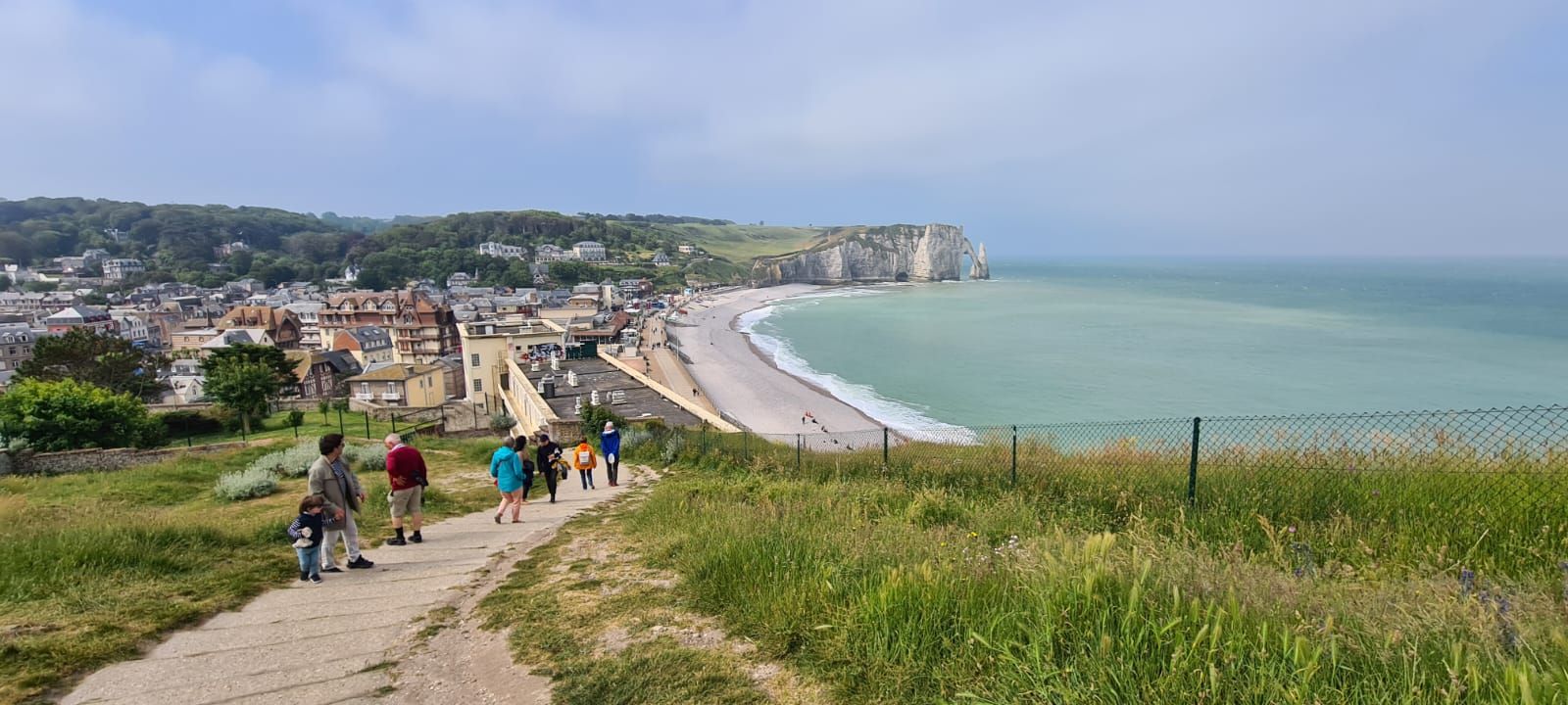 die Porte und die Aiguille d'Aval und auf der anderen Seite der Promenade die Falaise d'Amant. Schon von hier aus sieht man den Elefanten mit dem Rüssel im Wasser, ihr auch?