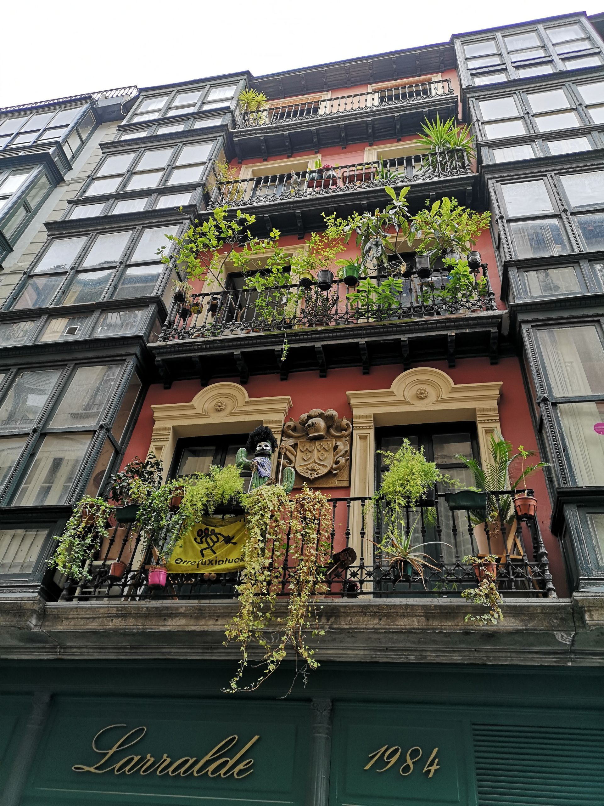 Wir steigen aus, gehen über die San Antón Brücke, laufen an der San Antón Kirche vorbei und sind innerhalb von 5 Minuten in der Altstadt. Ich habe zwar einige „Sehenswürdigkeiten“ vorbereitet, die wir gerne anschauen wollen, doch wir lassen uns hier einfach treiben. So kommen wir irgendwann am Plaza Nueva (neuer Platz) vorbei, ein 3.600 Quadratmeter großer öffentlicher Platz, der von vierstöckigen Gebäuden eingerahmt und über 64 Arkaden zugänglich ist. Dann kommen wir zum Mercado de la Ribera (Markt am Fluss), der grössten überdachten Markthalle Europas. Neben traditionellen Ständen mit frischen Produkten gibt es hier auch Gaststätten und Restaurants mit einer leckeren Auswahl an Pintxos. Von der Markthalle sind wir etwas „enttäuscht“, weil die ist nämlich geschlossen. Und irgendwann weiss ich auch warum: Ursprünglich war die Altstadt ja für morgen, Donnerstag, geplant. Und da hat die Markthalle auch nachmittags geöffnet.