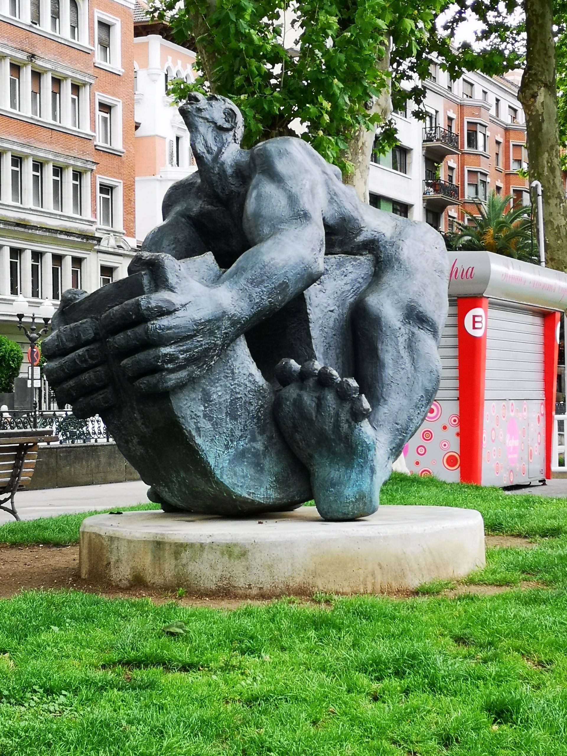 Zum Abschluss sind wir noch zu den Skulpturen El Peine del Viento ("Der Windkamm") gegangen. Das ist eine Sammlung von drei Stahlskulpturen, die jeweils über neun Tonnen wiegen. Die Skulpturen wurden dort aufgestellt, wo die Stadt endet und das Meer beginnt, wo die Wellen die schroffen Felswände des Monte Igeldo umarmen. Eduardo Chillida verankerte die drei Skulpturen an den Felsen, so dass der ankommende Wind in der Bucht von La Concha ständig "gekämmt" wird.