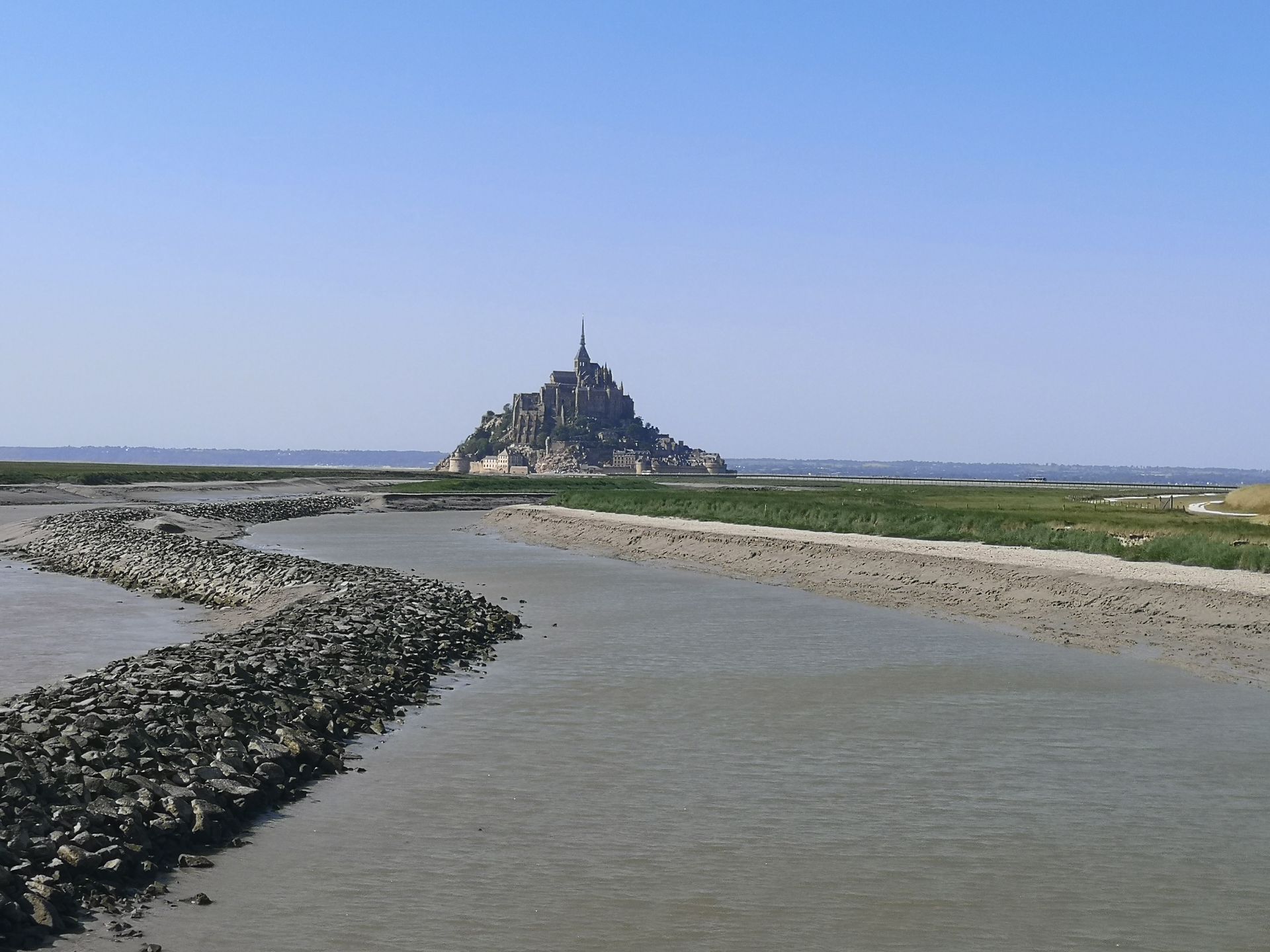 Gewaltig waren die Arbeiten am Fluss Couesnon: Er wurde mit einem Stausystem versehen, das sich bei Flut füllt, bei Ebbe geöffnet wird und durch einen schnellen Wasserabfluss den Sand aus der Bucht ins Meer schwemmt. Die Maßnahmen zeigen inzwischen ihre Wirkung, bei starken Springfluten wird der Welterbe-Berg wieder zur Insel.