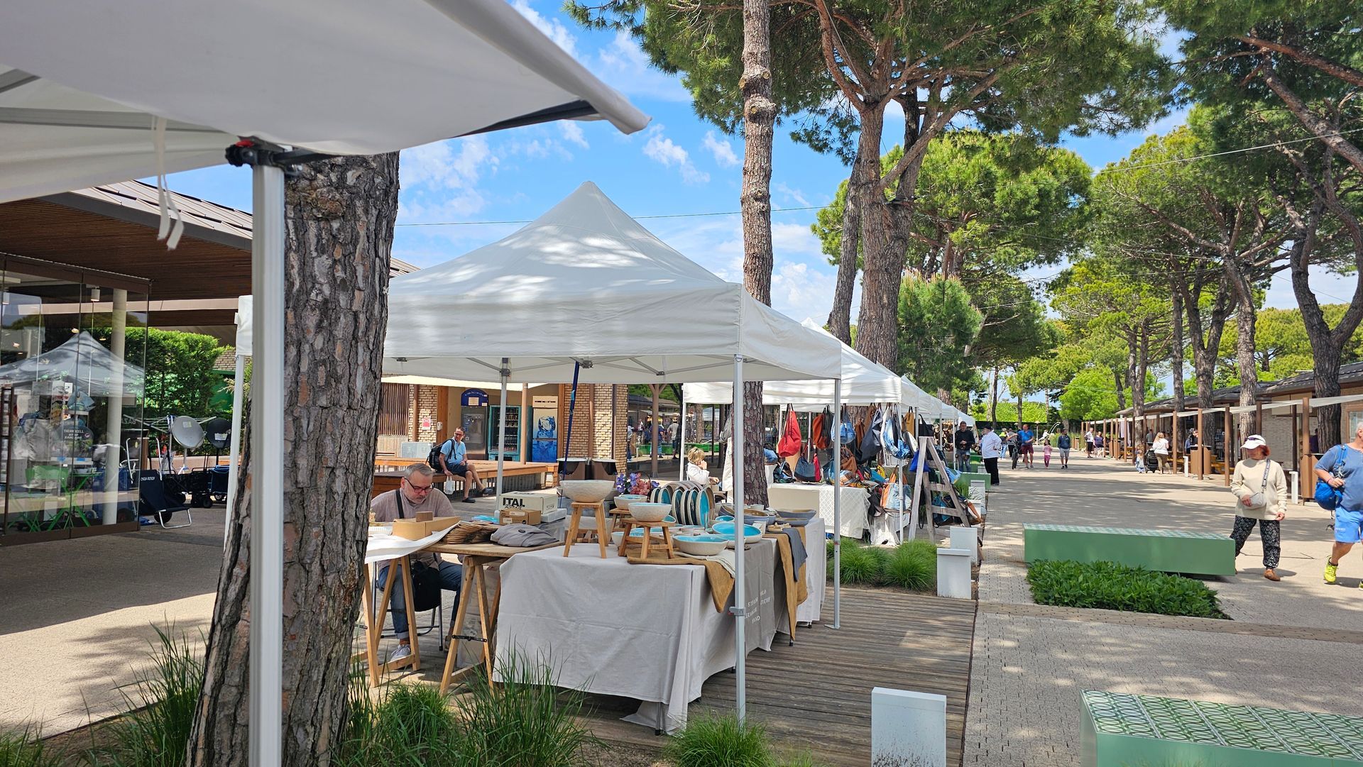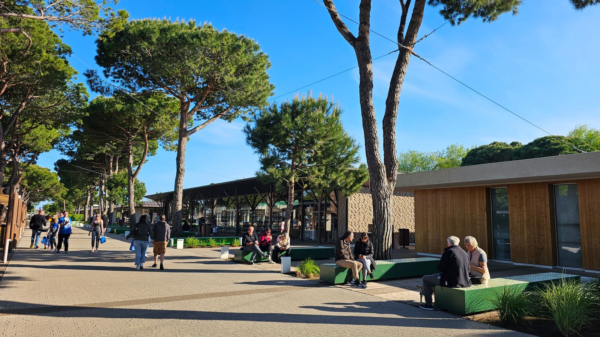 Wer will, muss den Platz während des Urlaubs gar nicht verlassen. Hier gibt es einfach alles: eine Campingplatz-Kirche, eine Arztpraxis mit Hubschrauberlandeplatz, einen Tierarzt, eine Apotheke, einen Supermarkt mit einer grossen Auswahl an allem, was man so braucht zu fairen Preisen, eine Bäckerei, einen Obst- und Gemüsestand, eine Fischtheke, Deko- und Modeboutiquen, ein Laden für Campingartikel, Süßwaren, Souvenirs oder Zeitschriften sowie eine Wäscherei und ein Fotostudio. Außerdem gibt es natürlich einen Fahrradverleih und man kann sich mit einem kleinen E-Bus überall hinfahren lassen.