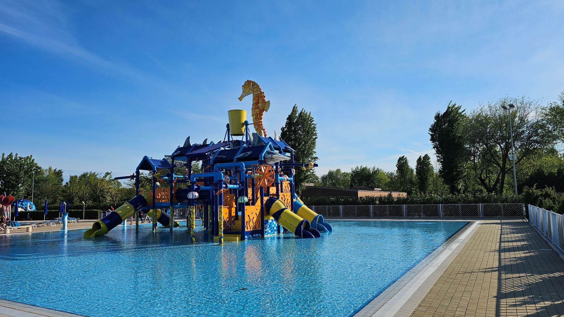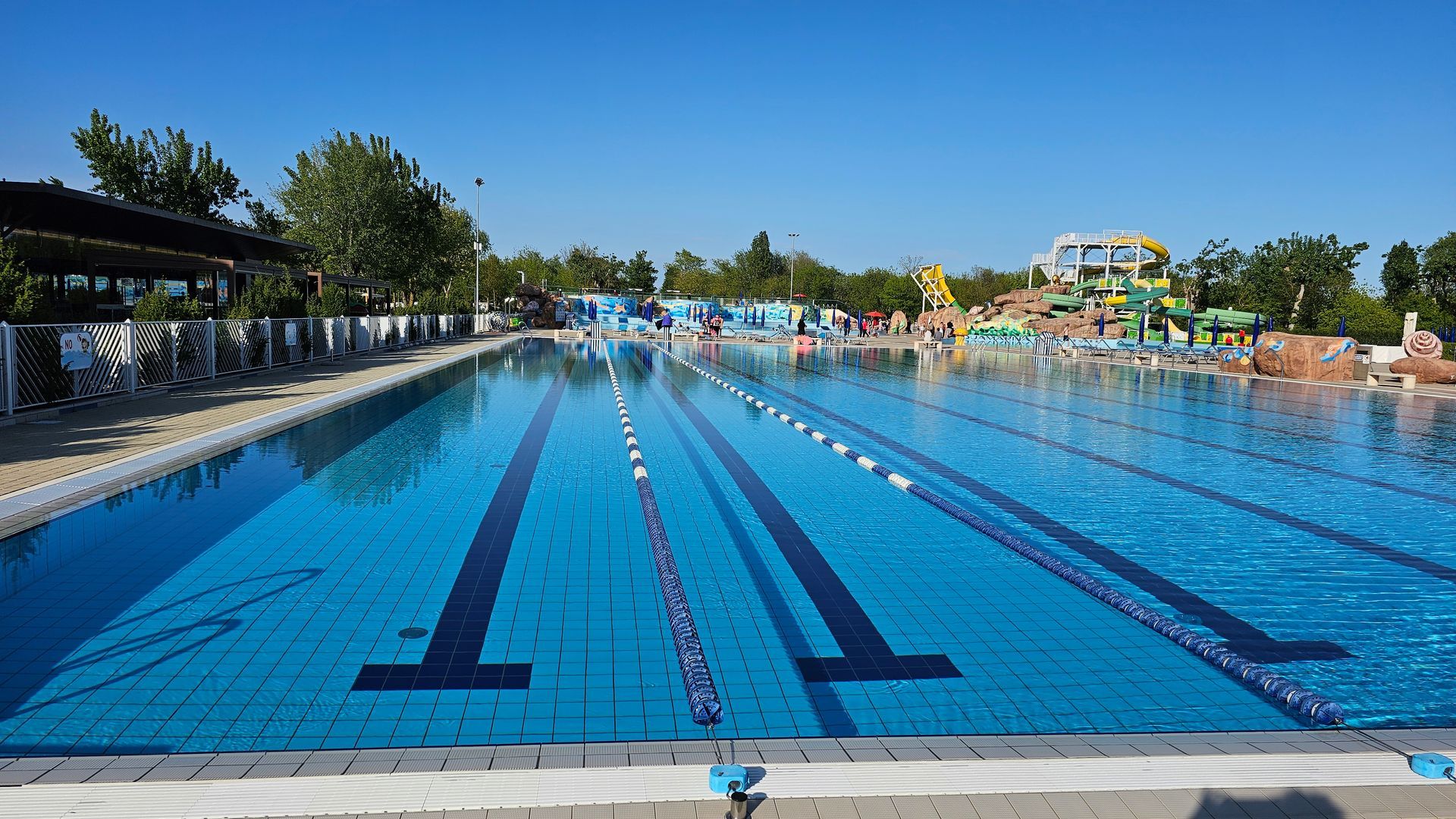 Ein Highlight auf dem Marina di Venezia ist der Aquapark. Auf 15.000 Quadratmetern befinden sich hier zehn Wasserbecken für jedes Alter und jeden Geschmack: vom Wellenbecken, über verschieden hohe Rutschen, die aufregende Funny Wave und Unterwassermassagebecken bis hin zur Sonnenterrasse und den Wasserspielen für die ganze Familie. Ob Bahnen Schwimmen im Olympic Pool oder entspannen im Jacuzzi - hier hat man die Qual der Wahl. Mich hat vor allem das riesengrosse und nicht beheizte Schwimmbecken angesprochen. Ich schwimme gerne kalt - doch das Wasser war einfach noch zu frisch. Es hat grosse Überwindung gekostet, überhaupt ins Wasser zu gehen und beim Schwimmen ist es einem auch nicht wärmer geworden. Schade.