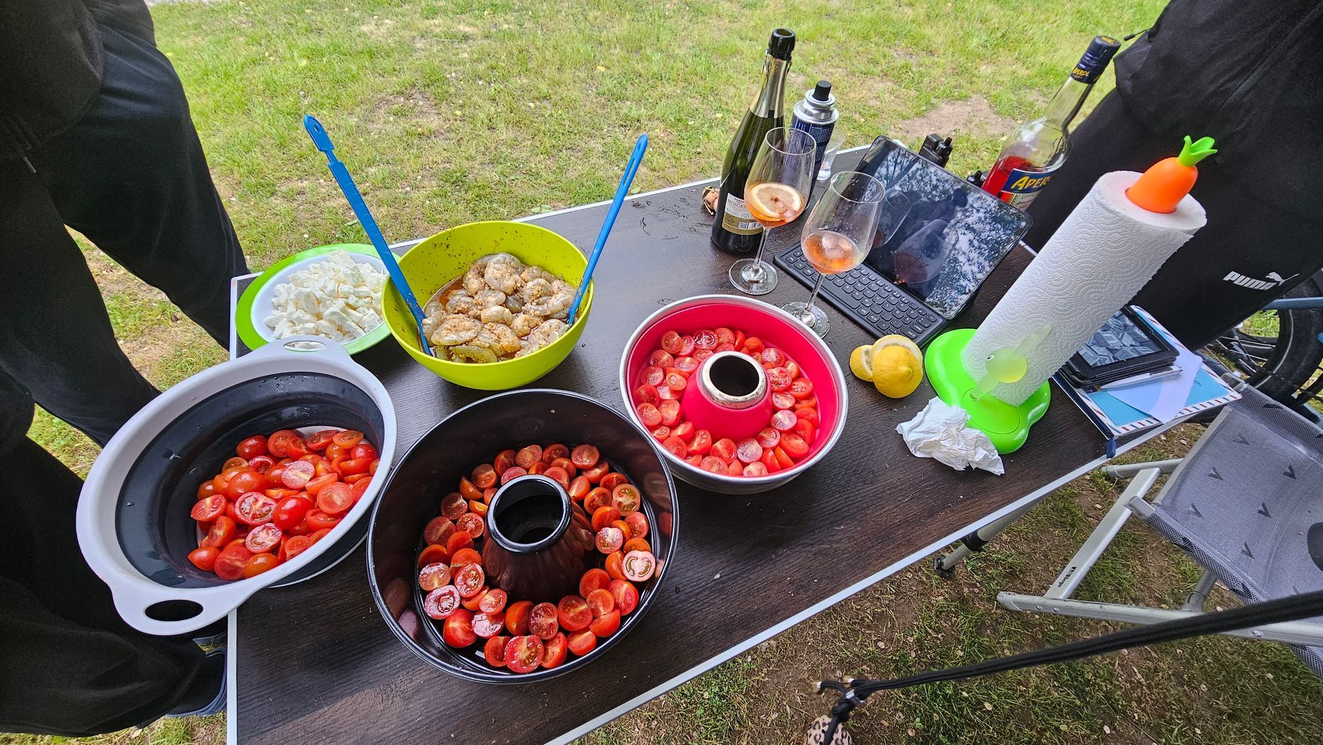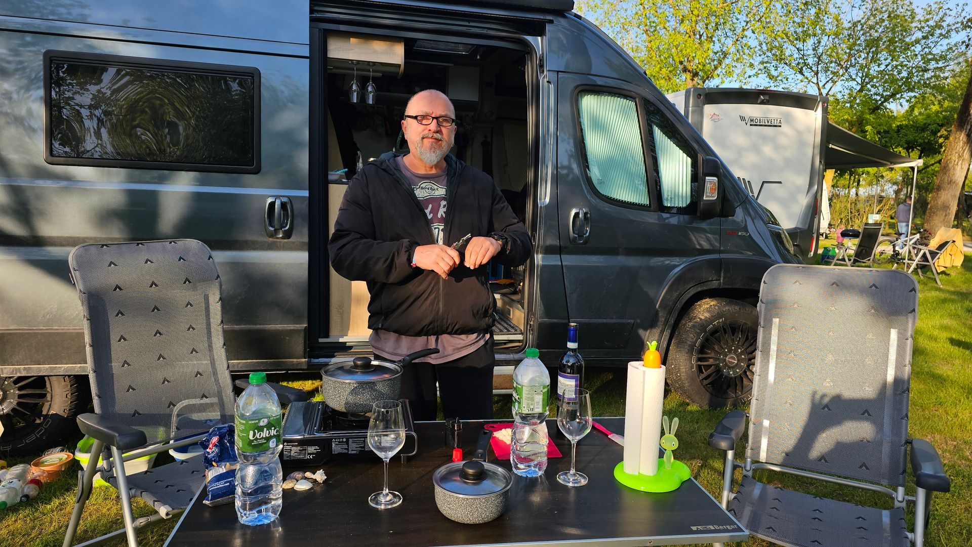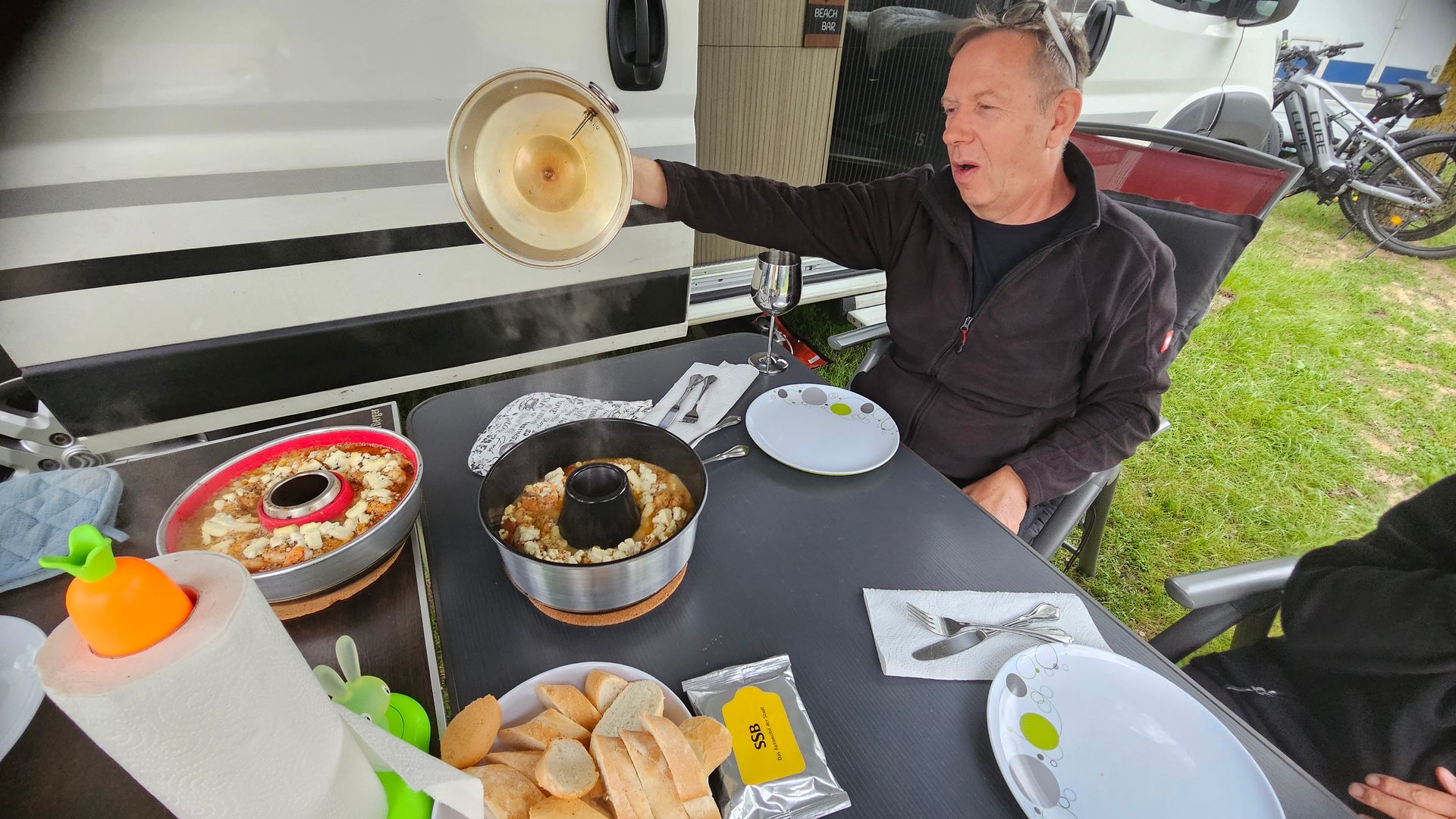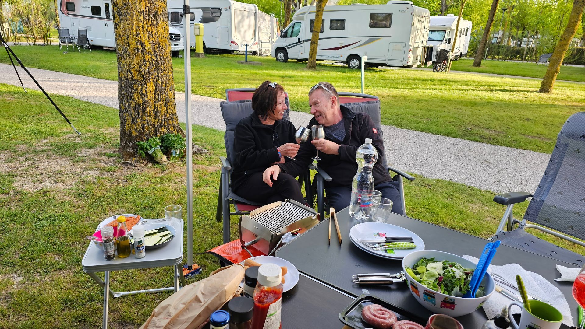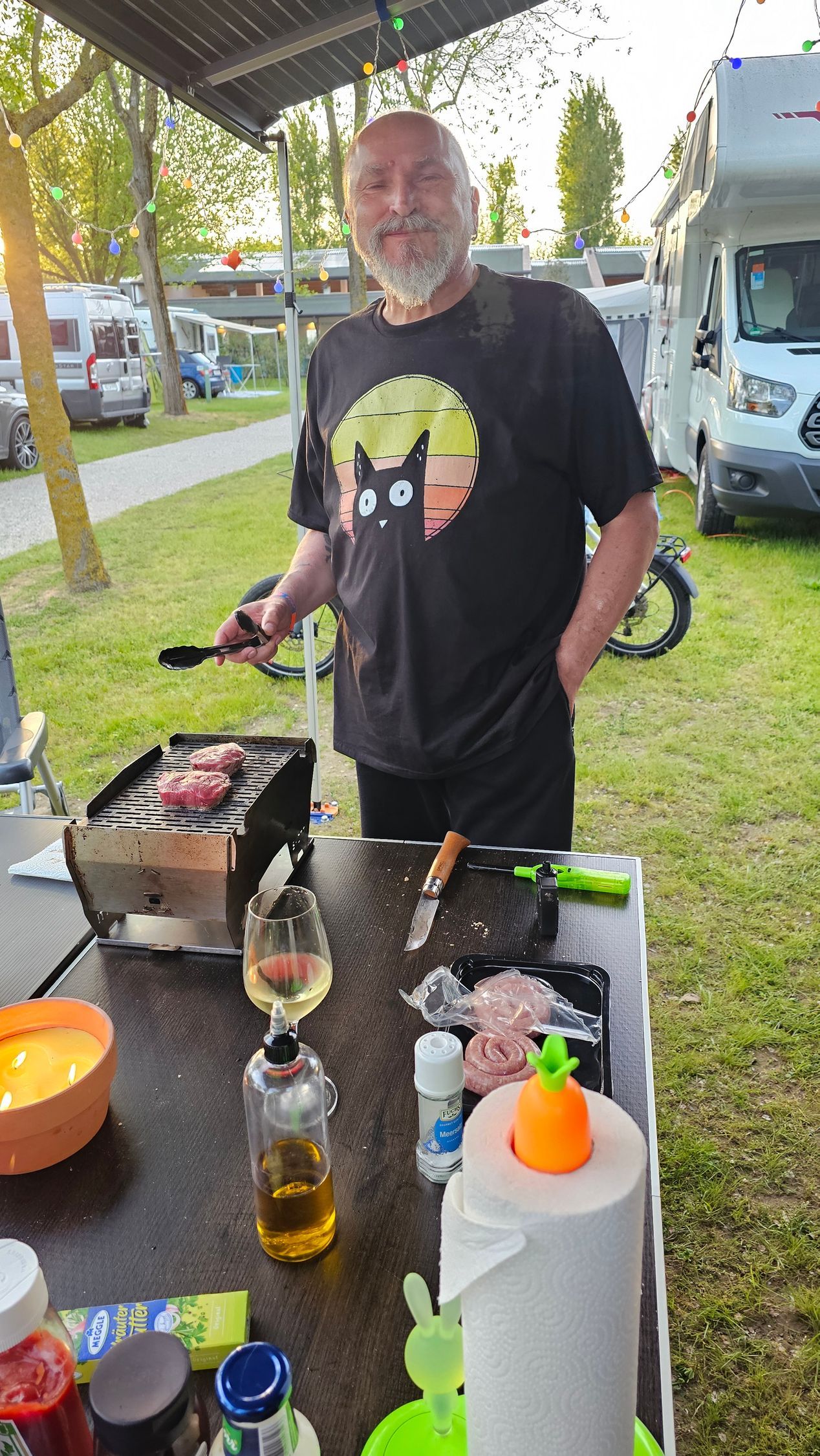 Während wir tagsüber meist getrennte Wege gegangen sind, haben wir uns alle auf unsere abendlichen Kochaktionen gefreut. Sven hat sich ganz neu einen Skotti-Grill geholt. So konnten wir also gemeinsam grillen - und das haben wir auch gemacht. Und wir hatten beide unseren Omnia dabei - da konnte Hansi unsere leckeren Feta-Shrimps für uns köcheln. Natürlich sind wir auch Essen gegangen und wir haben uns auch schon mal eine Pizza geholt. Alles in allem hatten wir abends gemeinsam immer viel Spass, wir haben aber auch Urlaubspläne geschmiedet und über Gott und die Welt geredet. Wir hatten einfach eine schöne Zeit.