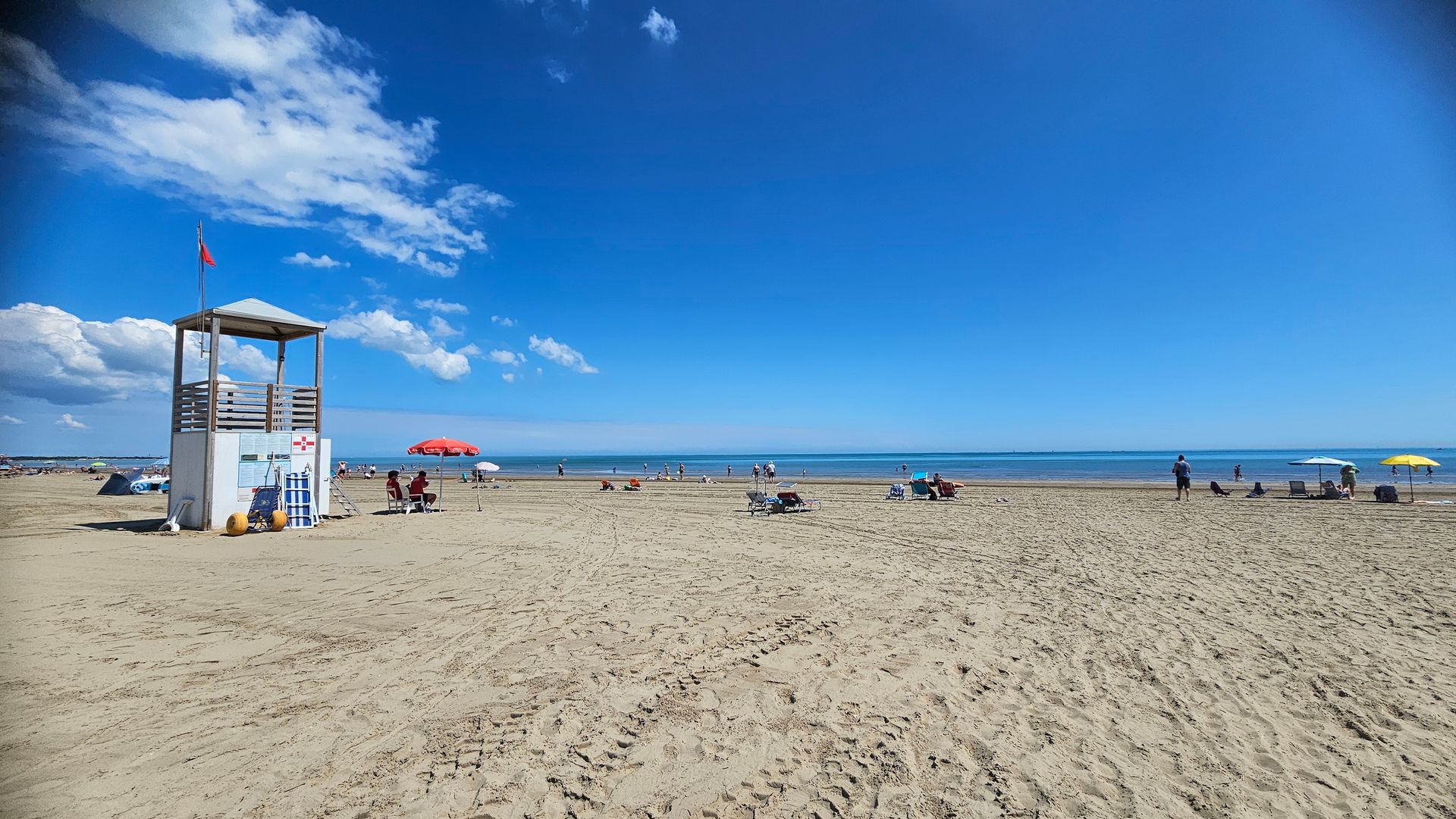 Toll ist aber auch der feinsandige Strand, der zum Campingplatz gehört. Er erstreckt sich vom Faro di Punta Sabbioni kilometerweit in Richtung Cavallino. Besonders angenehm ist das flache Wasser, das nur langsam tiefer wird. Hier konnte man dann auch schon schwimmen gehen - ich fand das Wasser einen Tick wärmer wie im Schwimmbecken.