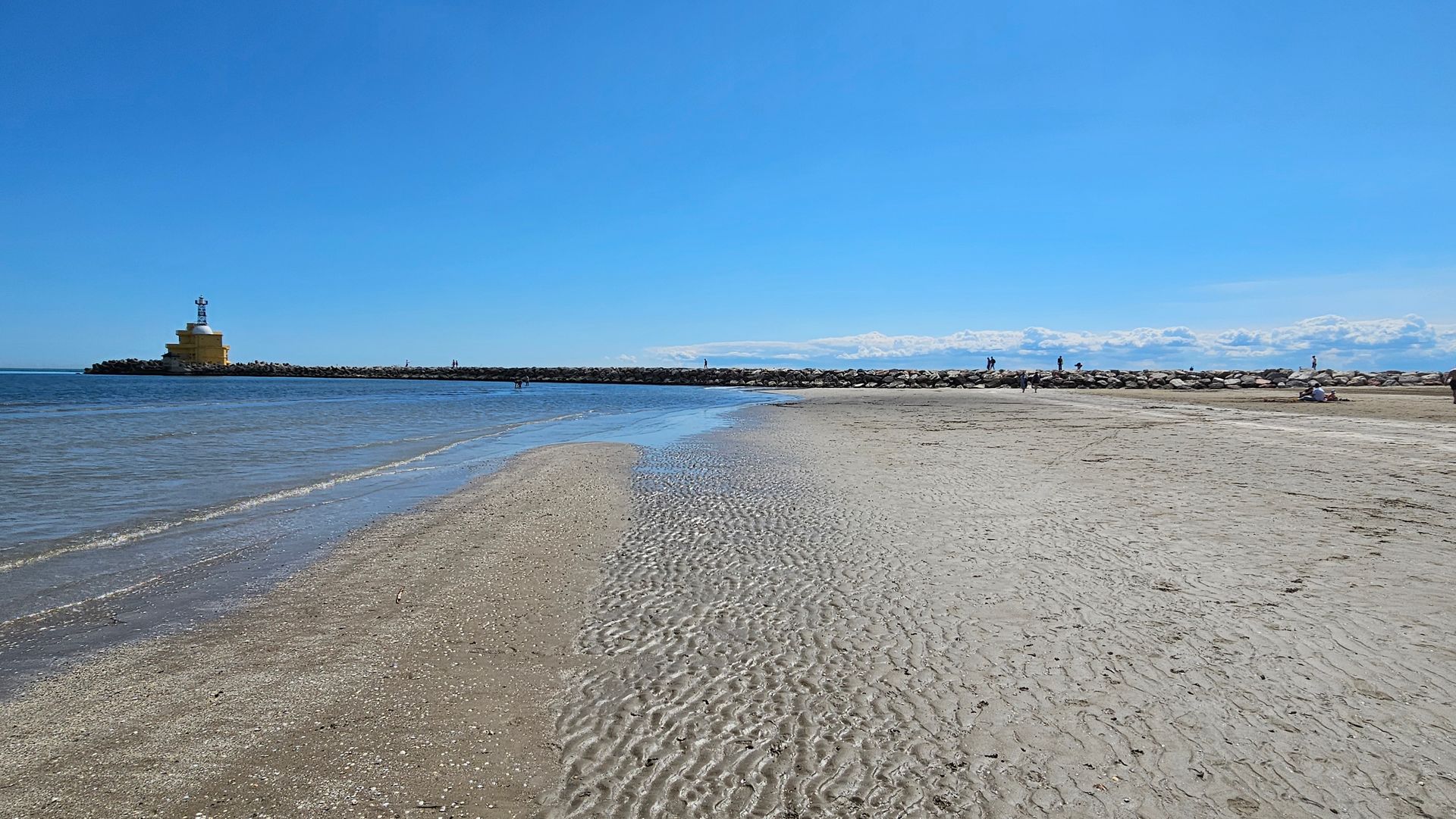 Toll ist der feinsandige Strand, der zum Campingplatz gehört. Er erstreckt sich vom Faro di Punta Sabbioni kilometerweit in Richtung Cavallino. Besonders angenehm ist das flache Wasser, das nur langsam tiefer wird. Hier kann man sich Liegen und Sonnenschirme leihen, es gibt immer wieder Strandbars (mit WC) und am Ende des Campingplatzbereiches gibt es auch ein gutbewertetes Fischrestaurant, das "Ristorante Calici e Mare". Leider haben wir es nie geschafft, dort essen zu gehen.