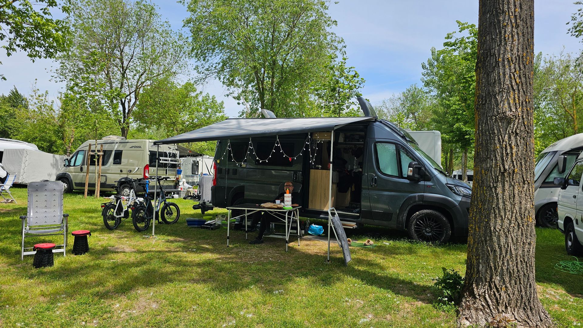 Das Bild oben von der Homepage der "Marina di Venezia" zeigt noch nicht einmal annäherungsweise die Grösse des Platzes. Links vom Aquapark gibt es noch zig weitere Plätze und den Bereich der Mietunterkünfte. Für Camper mit Hund gibt es einen separaten Platz und einen eigenen Zugang zum Strand. Ein Teil des Campingplatzes ist nicht reservierbar, so dass auch eine spontane Anreise möglich ist - in der Theorie. Wir haben eine Familie kennengelernt, die für die Pfingstferien keinen Platz mehr reservieren konnten, weil alles ausgebucht war. Die sind jetzt in der Vorsaison angereist, haben einen Platz im nicht reservierbaren Bereich bezogen und lassen den Camper nun sogar bis zu den Sommerferien stehen. Sie und Freunde/Bekannte nutzen den Platz dann abwechselnd. Einfallsreich muss man sein.