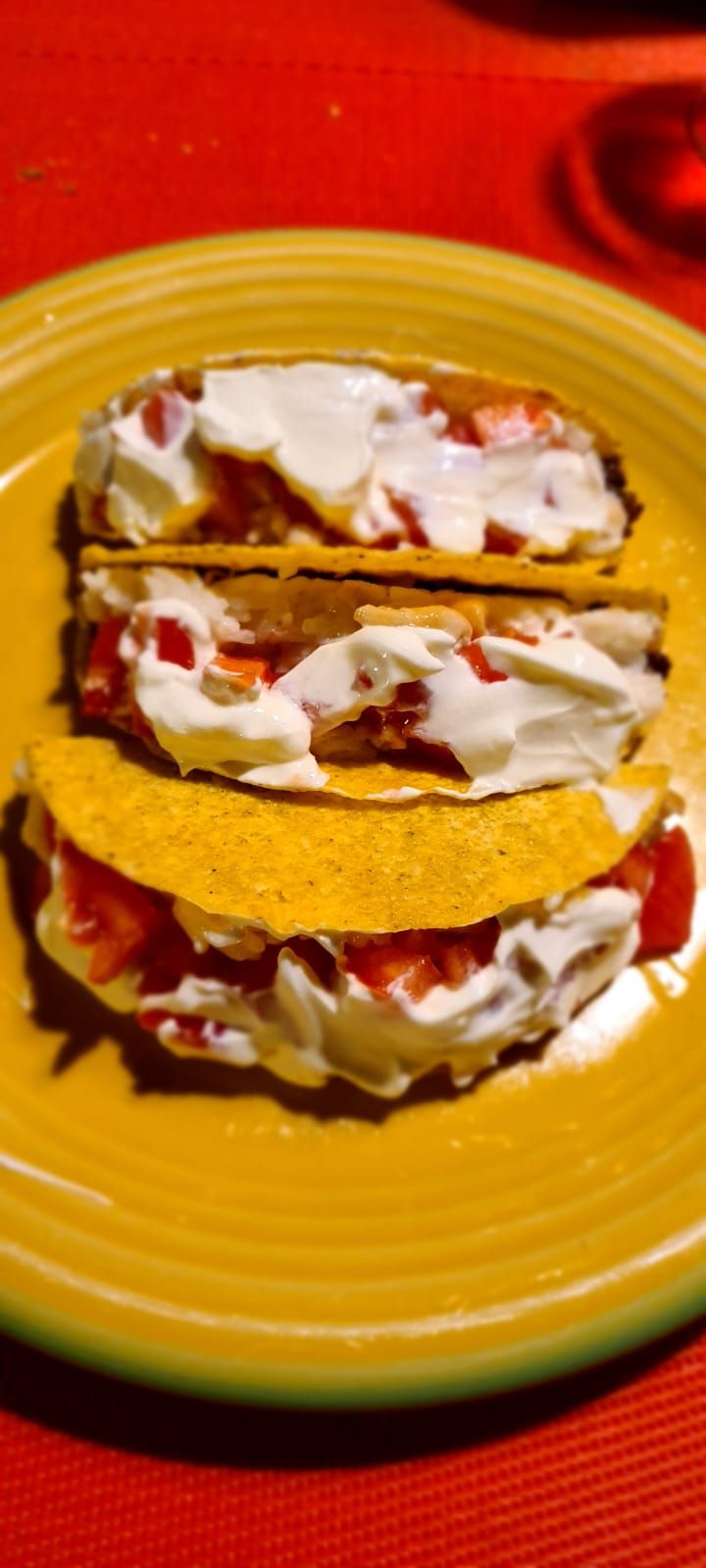 - Den Teig dünn (hier ist wirklich weniger mehr) mit Schmand bestreichen