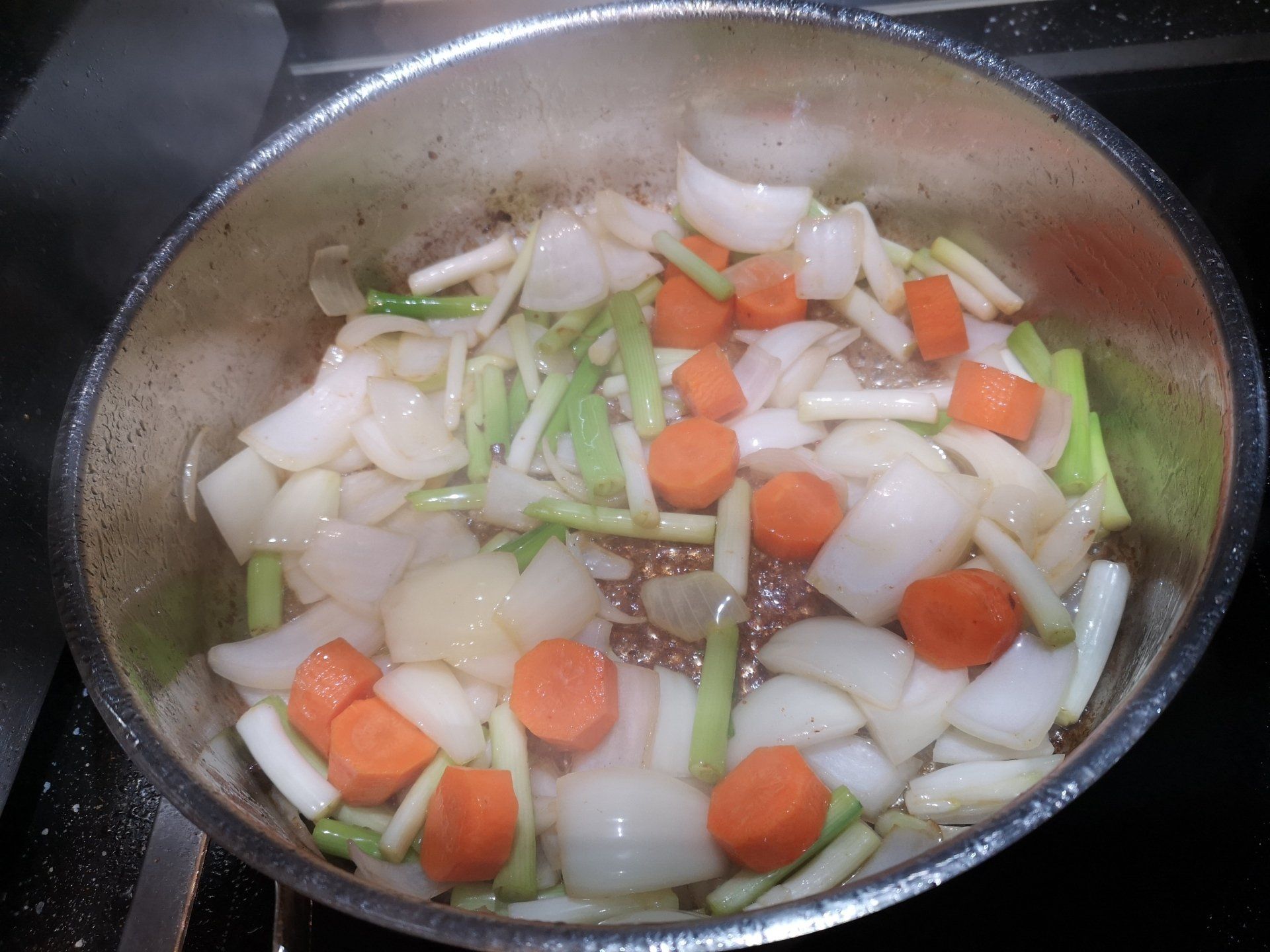 - Inzwischen die Zwiebeln und den Speck in Butter etwa 10 Minuten anschwitzen
