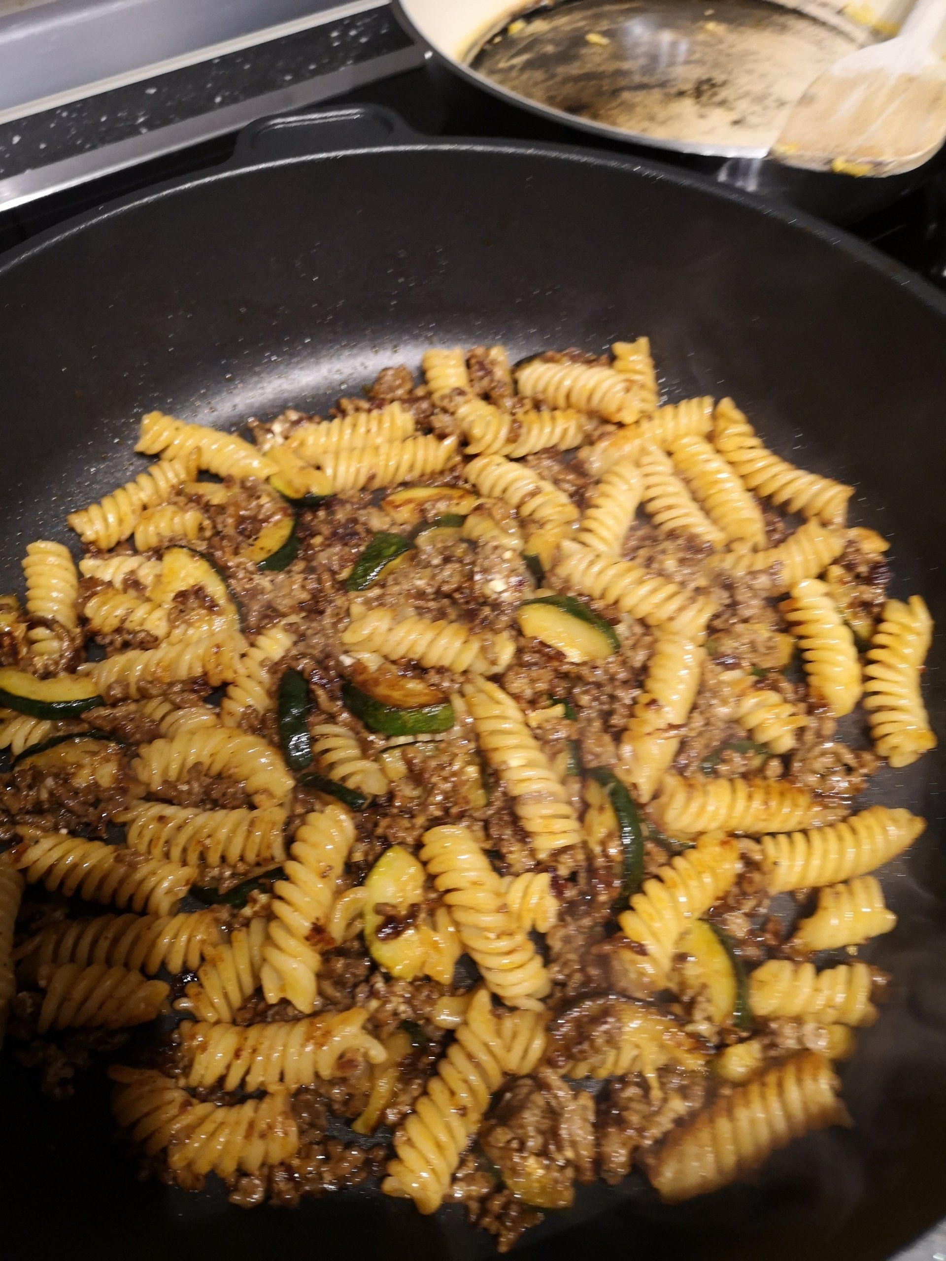 - mit Salz und Pfeffer würzen (vorsichtig sein - die Wurst und der Käse sind schon recht salzig)