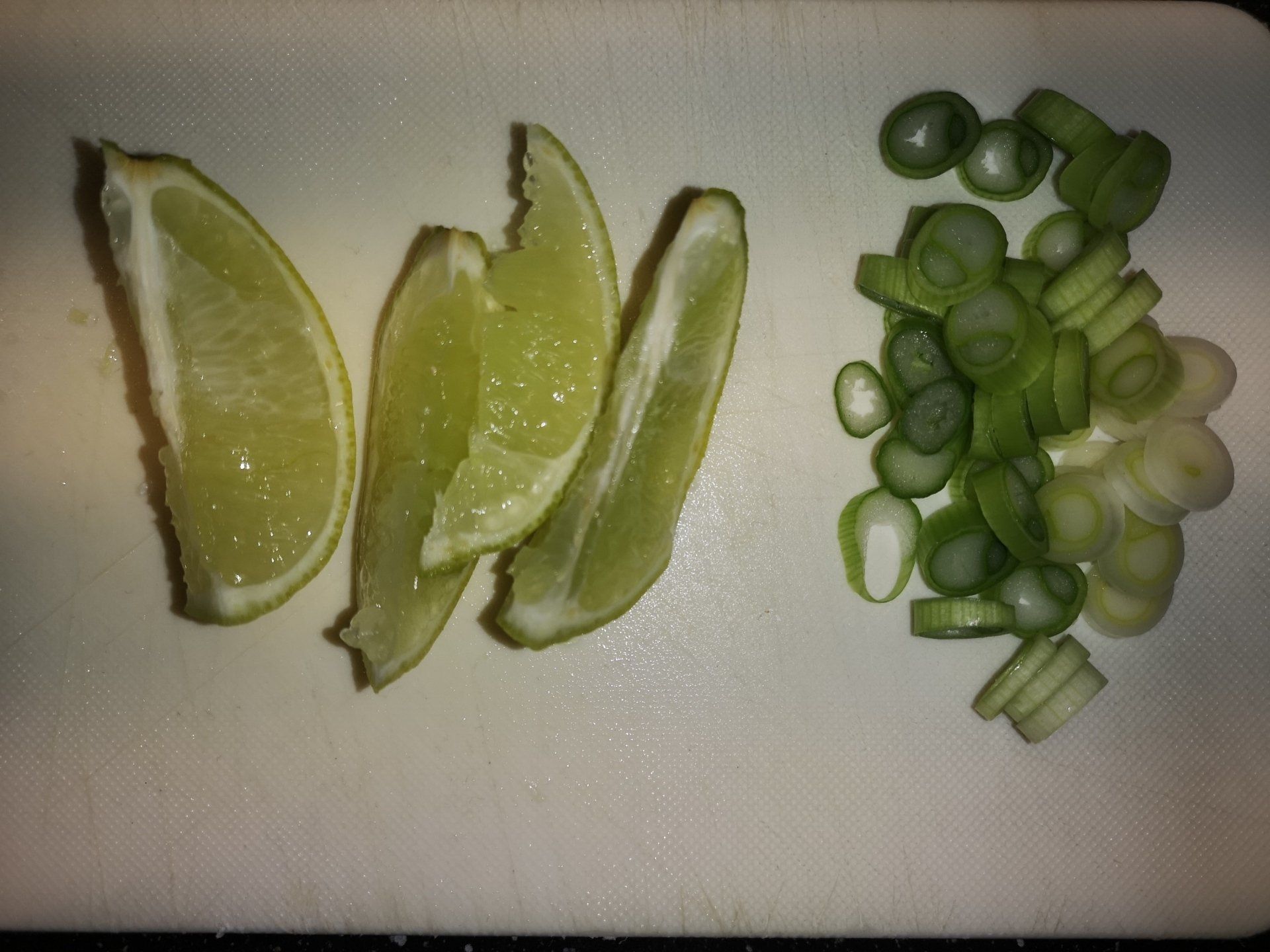 (Die Rückenflossen dranlassen - wir haben sie dummerweise weggeschnitten) - Eine Zitrone auspressen, die zweite Zitrone in Scheiben schneiden