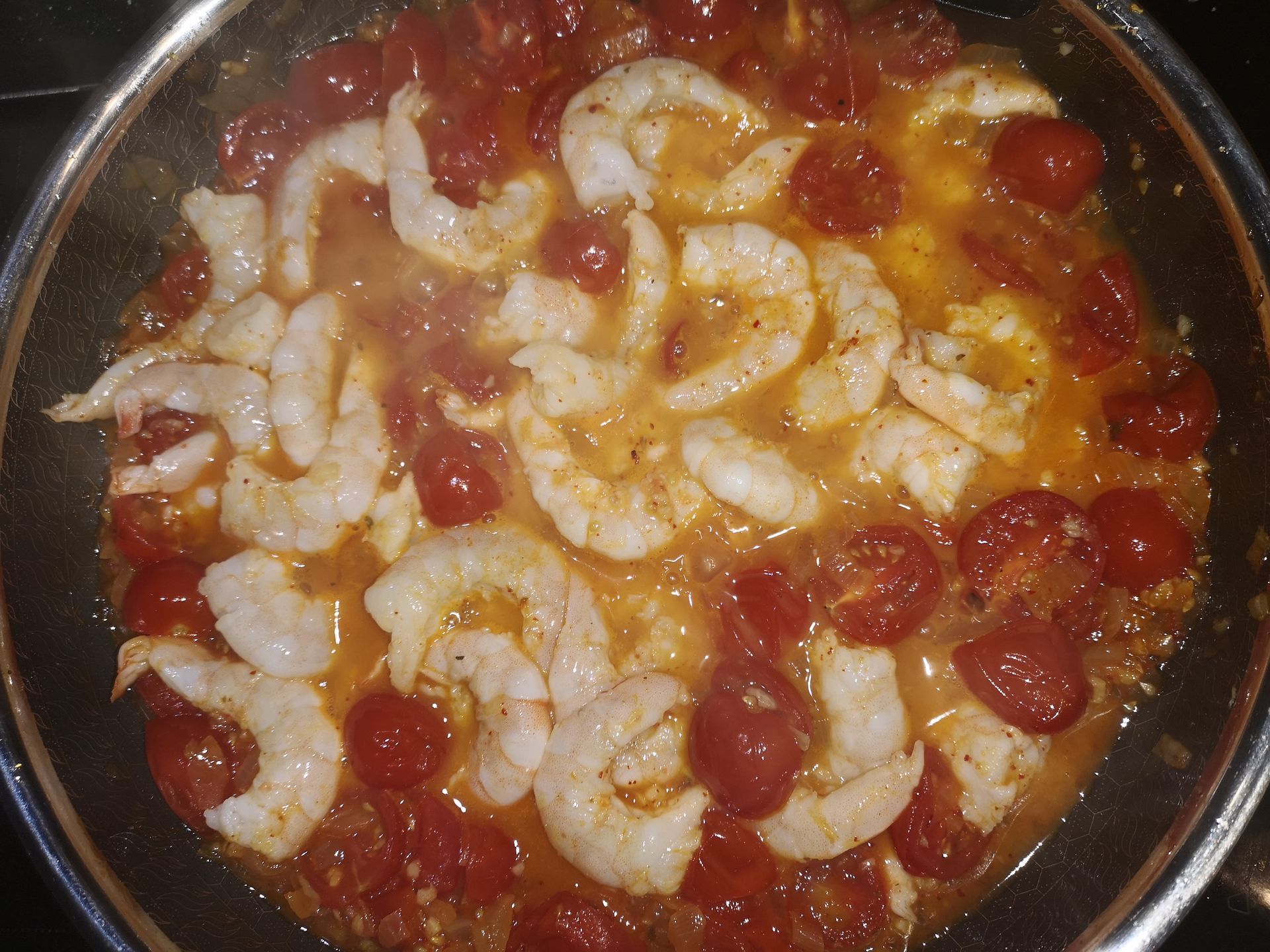 Aufpassen, dass die Shrimps nicht zu lange garen und dann trocken werden!