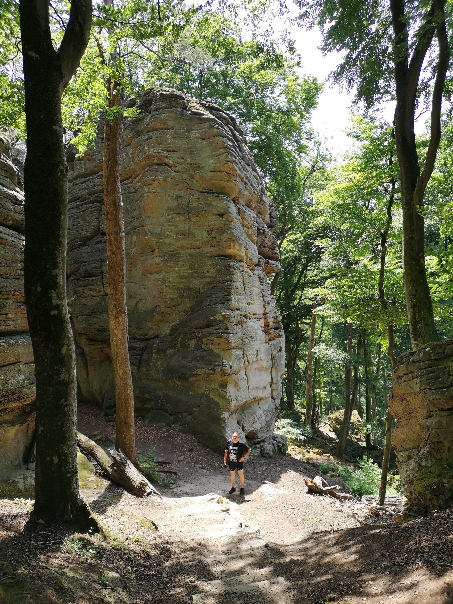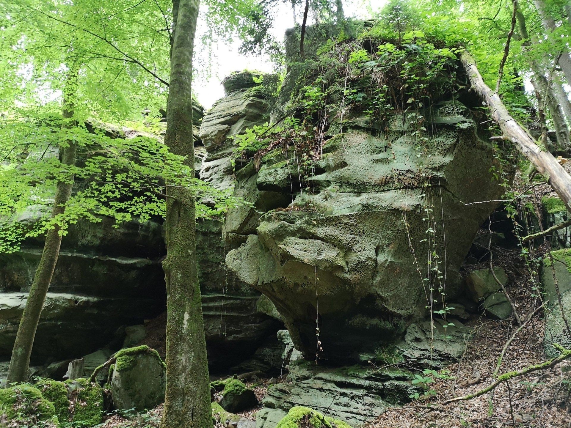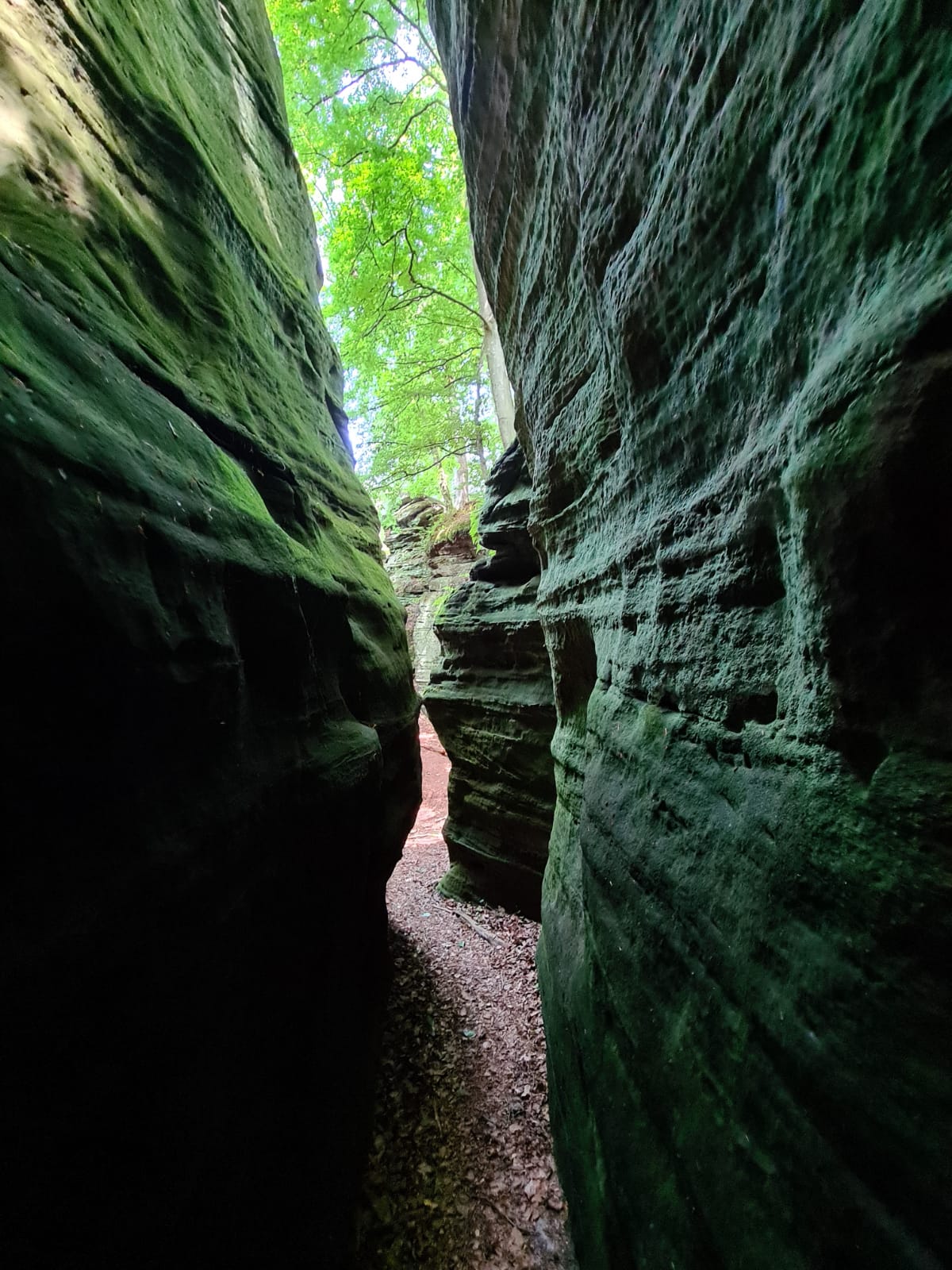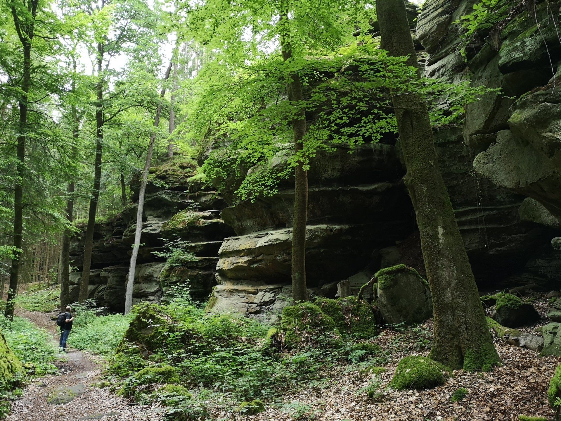 Gleich am Anfang des Pfades war ein kleiner Wasserfall und dann ging es richtig steil nach oben. So steil, dass selbst der Abstieg anstrengend war. Doch was uns dort oben erwartet hat, war der Hammer. Die bizarren Felsformationen aus Luxemburger Sandstein prägen diese Landschaft des Naturparks Südeifel und des Deutsch-Luxemburgischen Naturparks. Das hat sich wieder mal gelohnt.