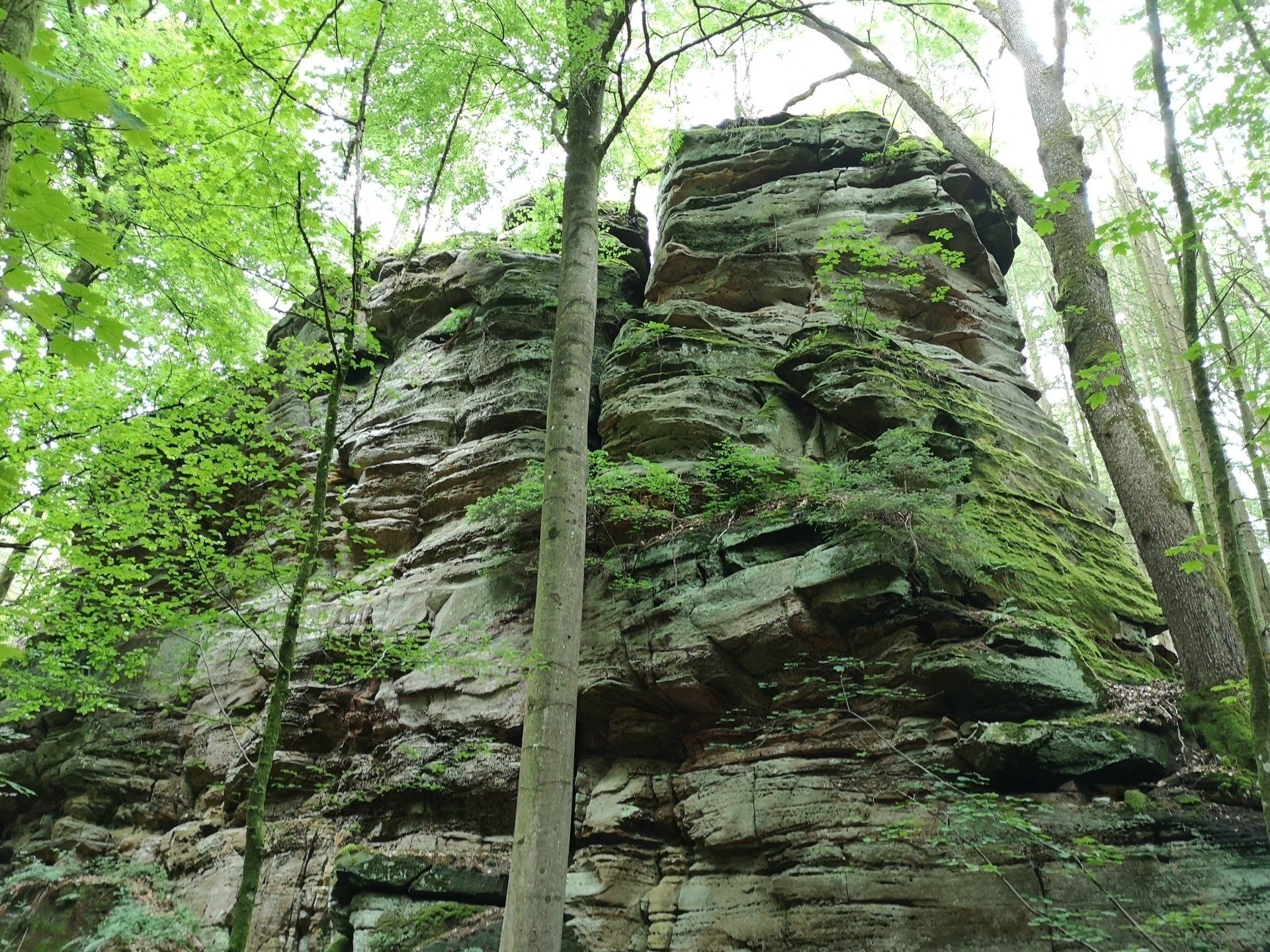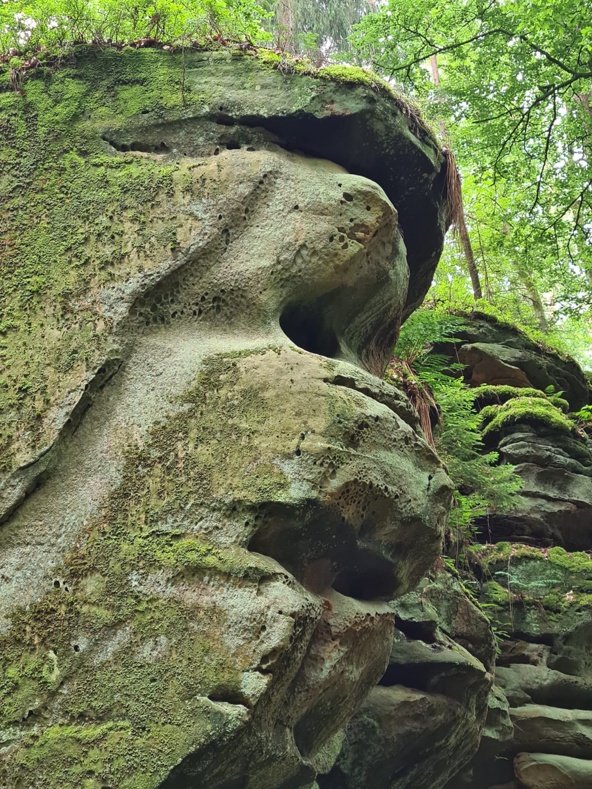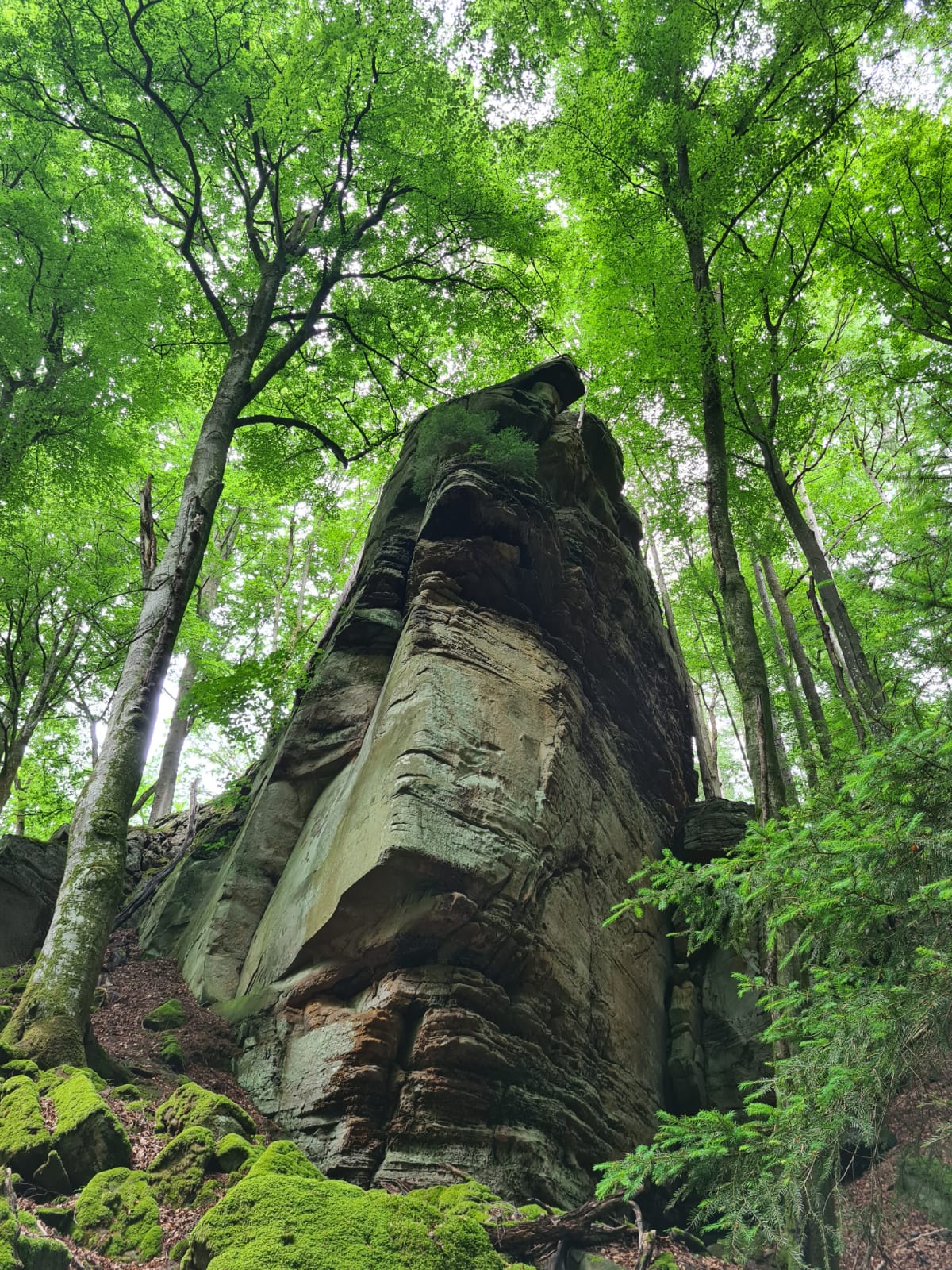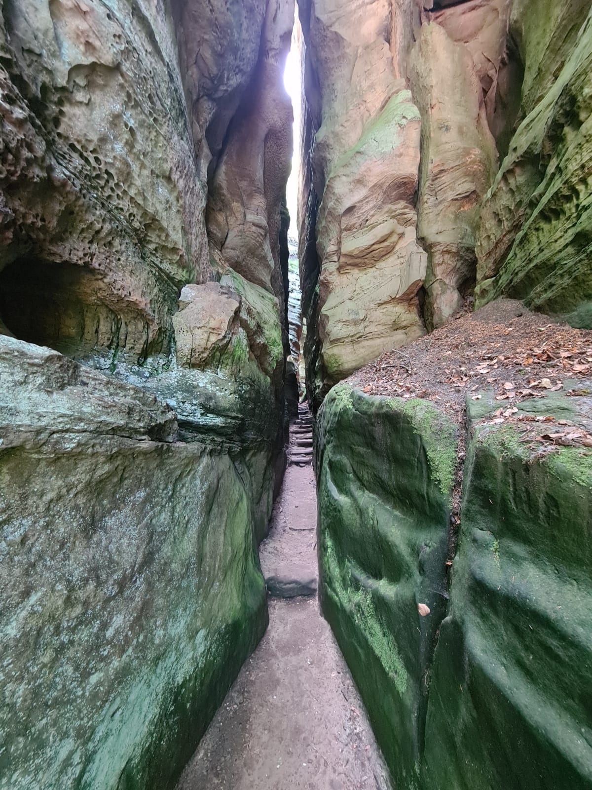Gleich am Anfang des Pfades war ein kleiner Wasserfall und dann ging es richtig steil nach oben. So steil, dass selbst der Abstieg anstrengend war. Doch was uns dort oben erwartet hat, war der Hammer. Die bizarren Felsformationen aus Luxemburger Sandstein prägen diese Landschaft des Naturparks Südeifel und des Deutsch-Luxemburgischen Naturparks. Das hat sich wieder mal gelohnt.