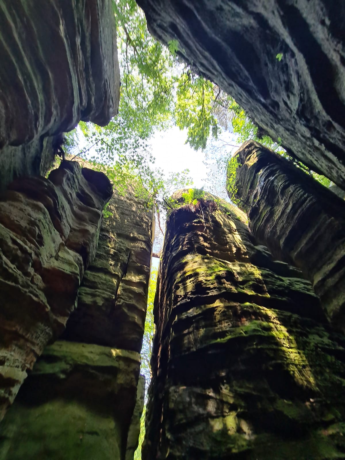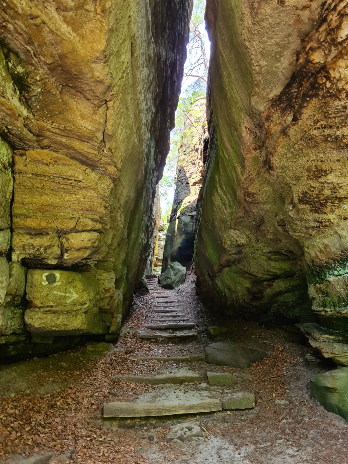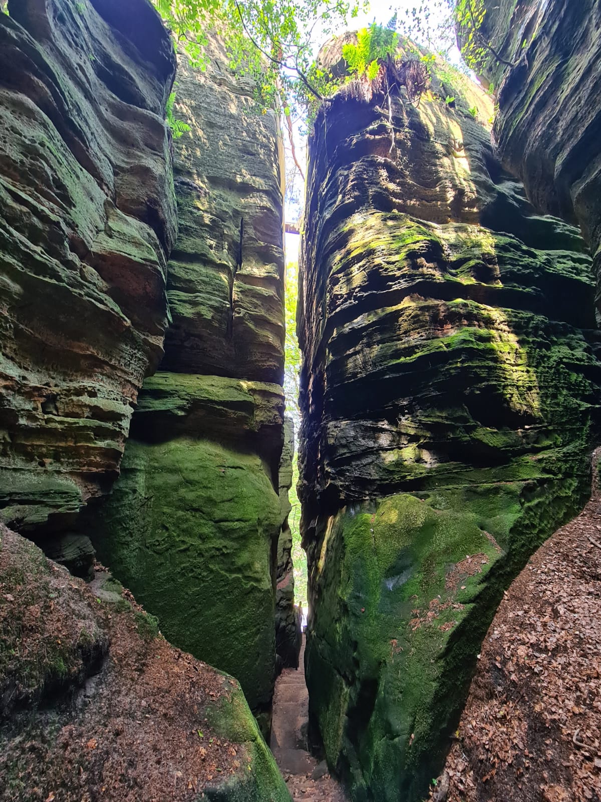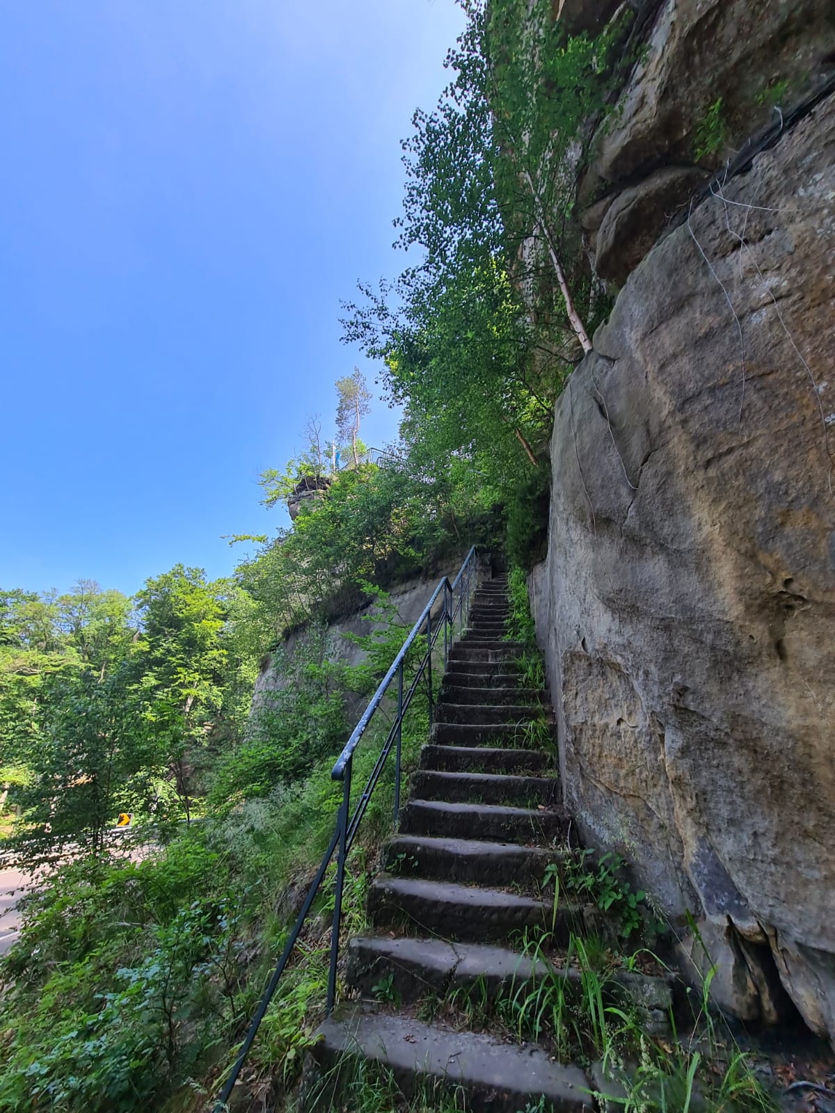 Gleich am Anfang des Pfades war ein kleiner Wasserfall und dann ging es richtig steil nach oben. So steil, dass selbst der Abstieg anstrengend war. Doch was uns dort oben erwartet hat, war der Hammer. Die bizarren Felsformationen aus Luxemburger Sandstein prägen diese Landschaft des Naturparks Südeifel und des Deutsch-Luxemburgischen Naturparks. Das hat sich wieder mal gelohnt.