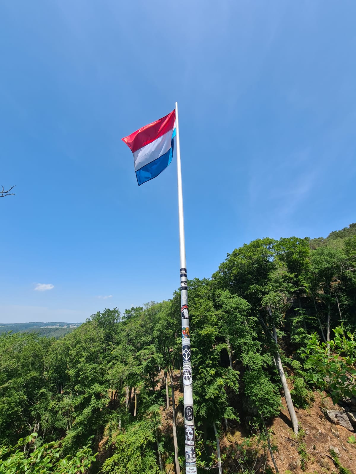 Doch wir waren nicht nur mit den Bikes unterwegs, sondern direkt vom Campingplatz aus konnte man auch die ein oder andere kleine Wanderung unternehmen. Besonders eindrucksvoll war die Wanderung zum "Nördlichen Predigtstuhl". Dafür mussten wir über die Brücke gehen und waren damit wieder in Deutschland, genauer in der Süd-Eifel.