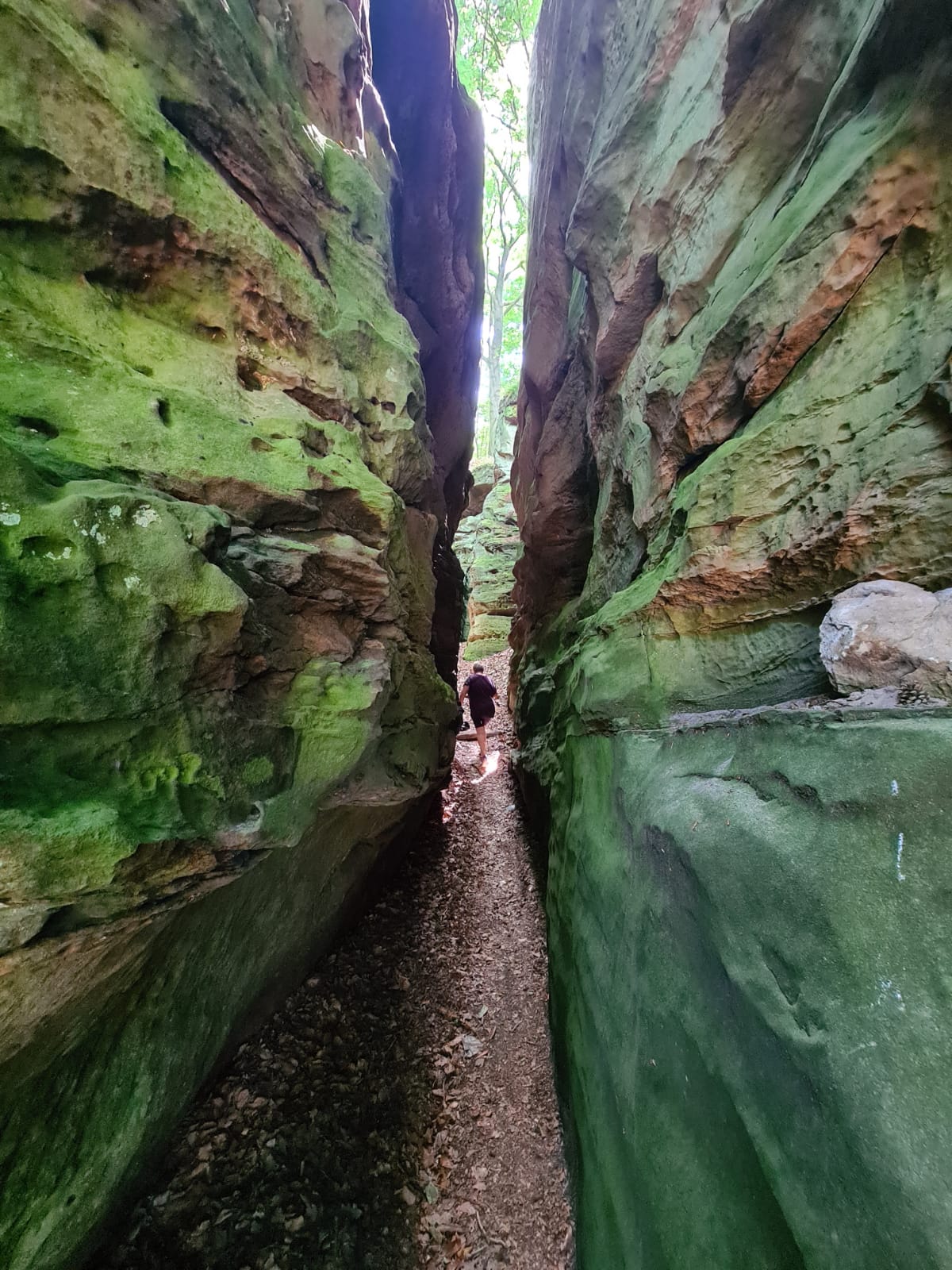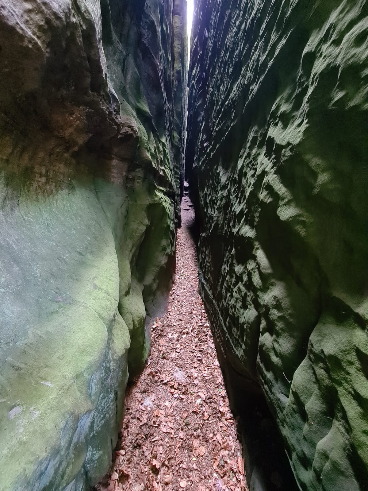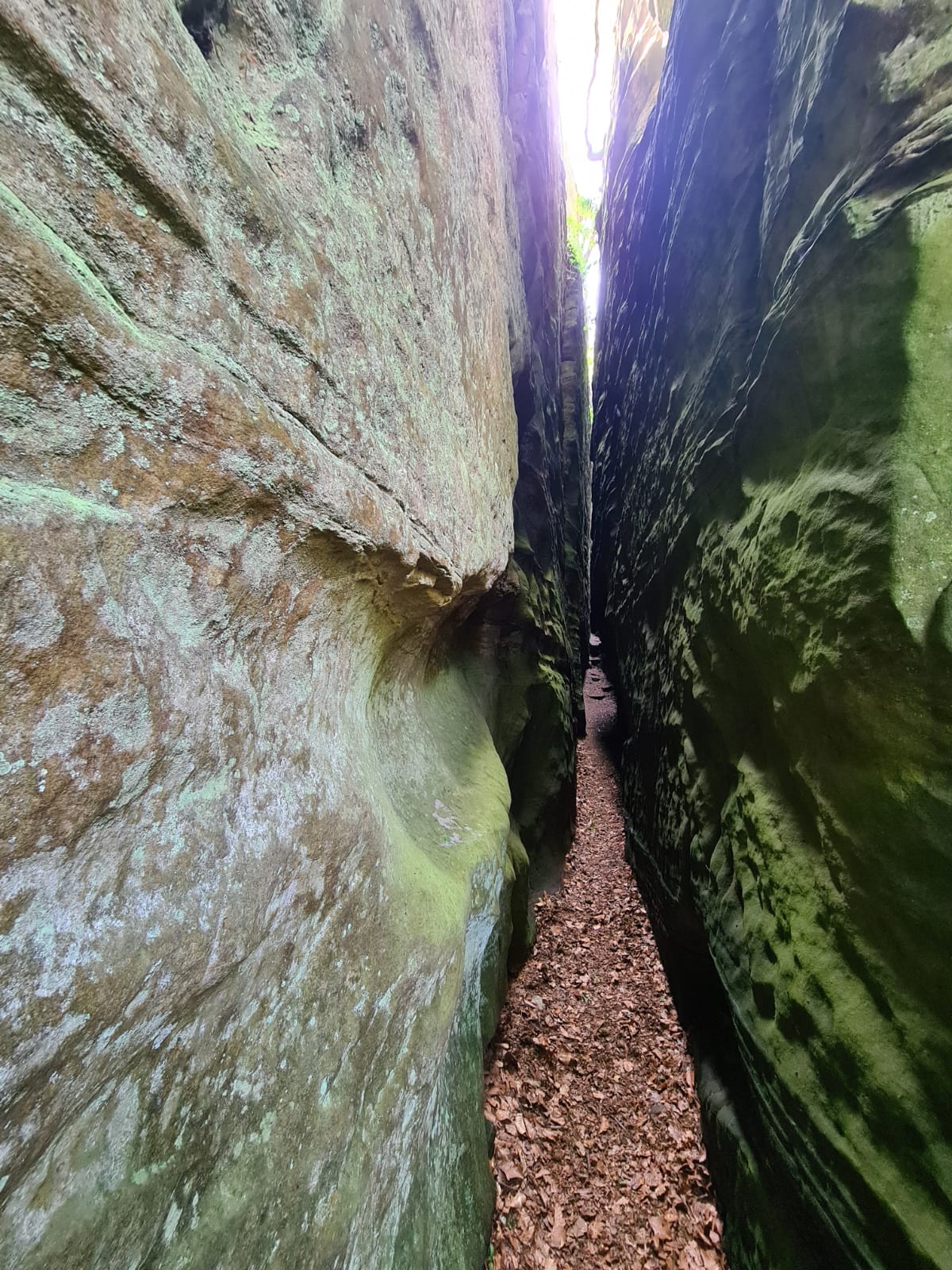 Was für ein tolles Fels-Labyrinth. Gegenüber ist nochmals eine Schlucht, die"Binzeltschlüff". Nicht ganz so spektakulär, aber auch sehenswert und vor allem kühl. Und man hat noch einmal die Möglichkeit, einen Blick auf das Müllerthal zu werfen.