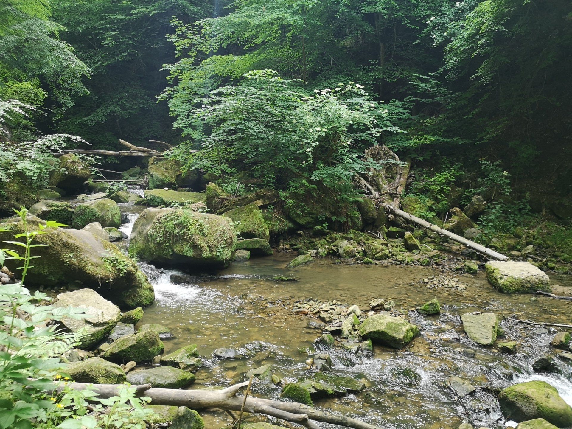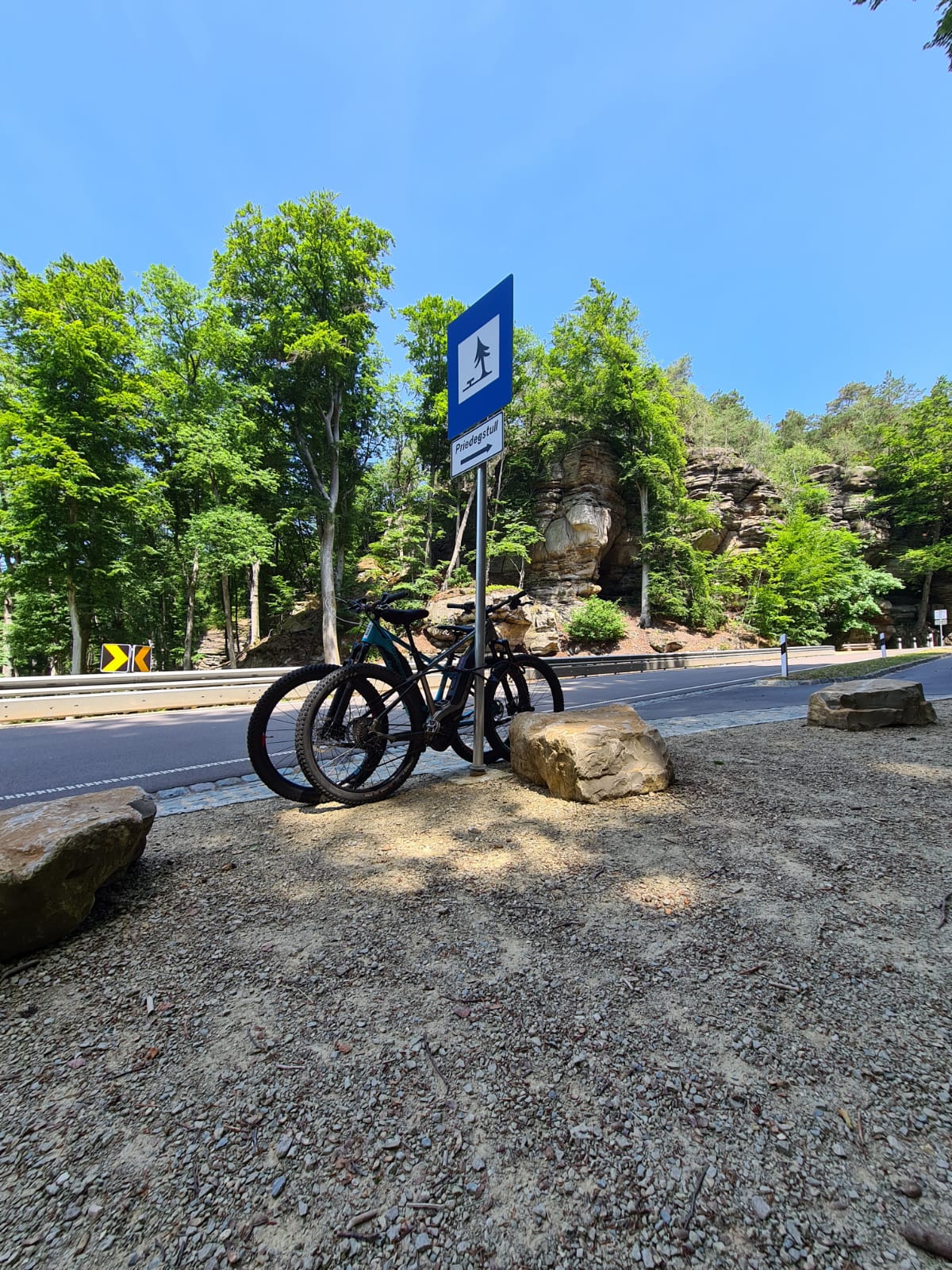 Nachdem das mit Beaufort so toll geklappt hatte, wurden wir "mutiger". Unser nächstes Ziel - eigentlich waren es ja 3 Ziele - war die Aussichtsplattform "Predigtstuhl", die Schluchten "Werschrummschlüff" und "Binzeltschlüff". Wir mussten auch dafür ein ganzes Stück bergauf fahren und das an einem Tag bei +/- 30 Grad. Doch der Wald hat die Hitze erträglich gemacht und in der Schlucht später, haben wir sogar fast gefroren. Wow, was für toller Ausflug. Die Rückfahrt war dann eigentlich ein Kinderspiel - fast immer nur bergab.