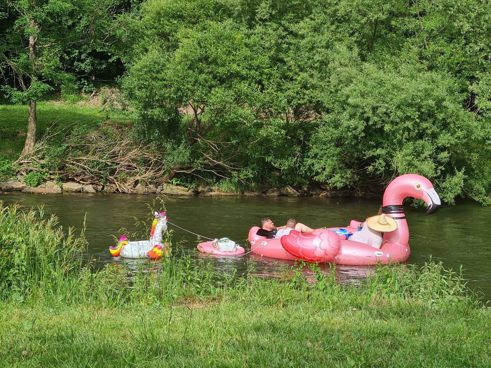 Wenn wir mal nicht unterwegs waren, dann haben wir dem lustigen Treiben vor unserem Camper auf der Sauer zugeschaut. Die Menschen hatten Spass - wir auch. Was da alles vorbeigepaddelt ist.......