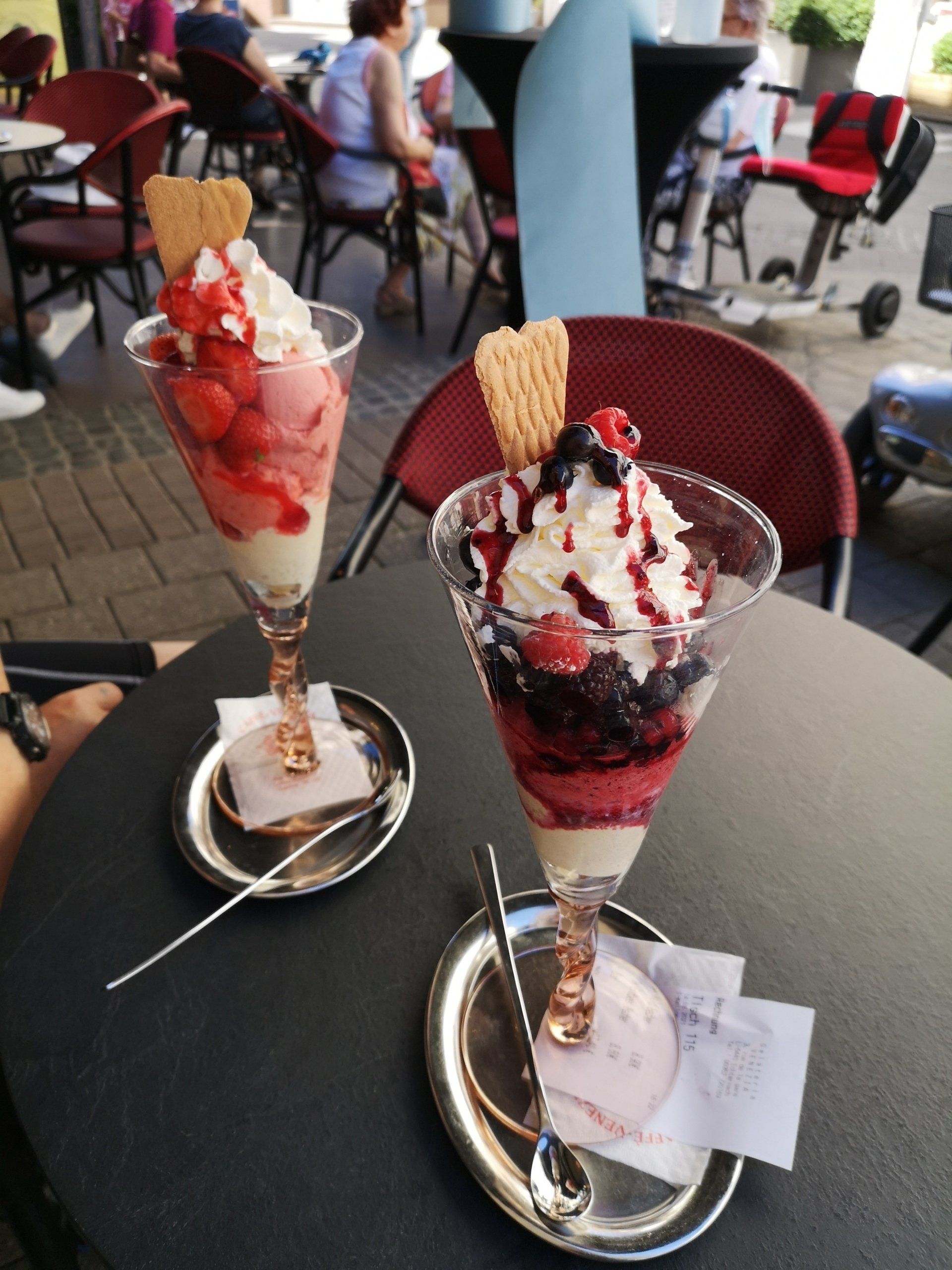 Wir sind eigentlich fast jeden Tag aufs Bike gestiegen, um die Gegend zu erkunden und die Seele baumeln zu lassen. Da war meistens der Weg das Ziel. Und einmal gab es eine richtig tolle "Belohnung" - ein Eisecher, der so hoch war, dass man den gar nicht so wichtig essen konnte.