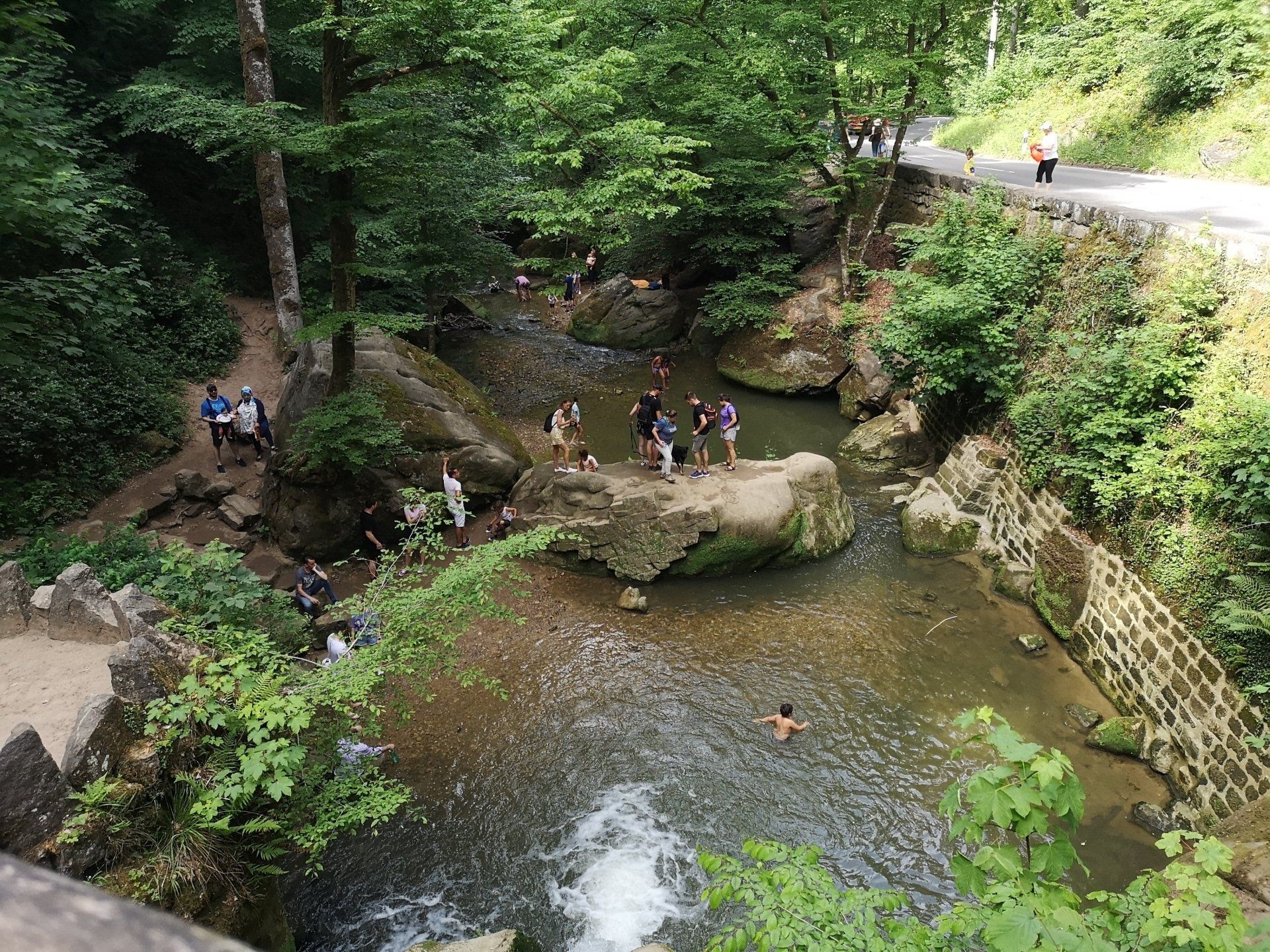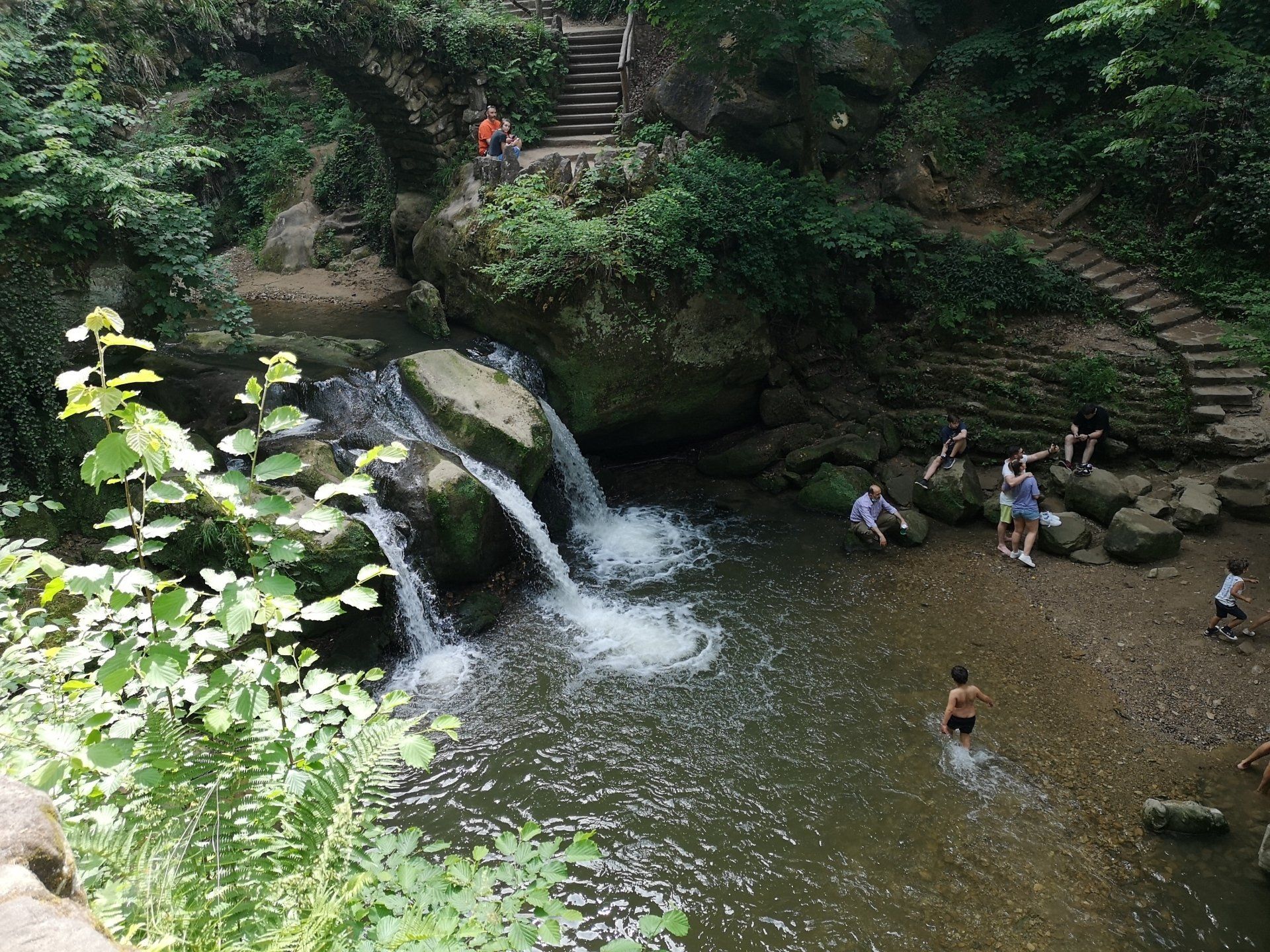 Am Wochenende hatten wir dann eigentlich schon fast alle meine vorbereiteten Ausflüge mit dem Bike abgefahren. Aber halt, da gibt es doch noch den idyllischen Wasserfall "Schiessentümpel" das mit Abstand bekannteste Fotomotiv der Luxemburgischen Schweiz überhaupt. Doch an einem Samstag, bei über 30 Grad Hitze war das keine so tolle Idee. Wir waren dort nämlich nicht die Einzigen - und die Strässchen waren auch stark befahren. Na ja, da kommen wir ein anderes Mal nochmals her.