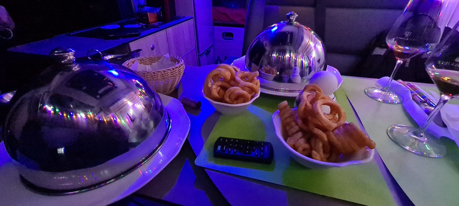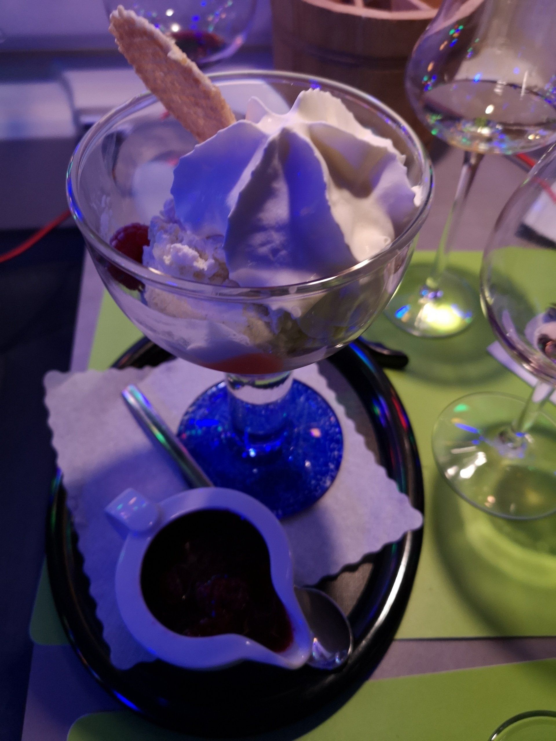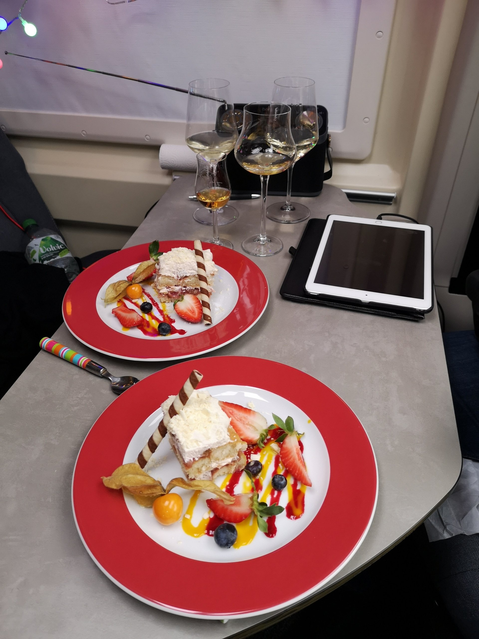 Offene Getränke dürfen nicht angeboten werden, also haben wir ersteinmal eine Flasche Sekt bestellt.