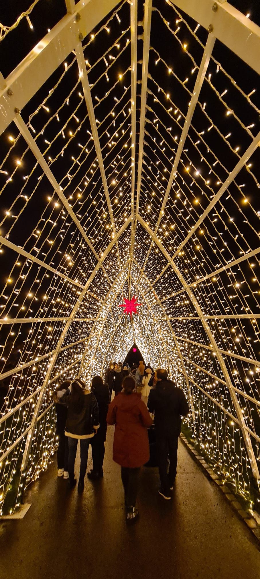 2018 gab es den Christmas Garden das erste Mal in Stuttgart. Eigentlich mögen wir solche "Massenveranstaltungen" eher wenig, aber die Bilder, die wir immer wieder gesehen haben, haben uns so gut gefallen, dass wir uns dieses Jahr Karten geholt haben. Die Veranstaltung findet im Freien statt, schon bei der Buchung musste man die gewünschte Uhrzeit für den Besuch angeben, so dass also trotz Corona nicht viel passieren sollte. Zudem wurde kurz vorher die 2G+-Regel eingeführt. Wir waren schon geboostert, so dass wir uns zuvor nicht testen lassen mussten.Unser "Termin" war um 18 Uhr. Am Eingang war nur wenig los, so dass wir also trotz der aufwändiger Einlasskontrolle recht schnell drin waren. Der Rundweg ist etwa 2 km lang und gut ausgeschildert. Man läuft durch eine glitzernde und leuchtende Märchenlandschaft. Ja, das ist schon sehr schön gemacht.