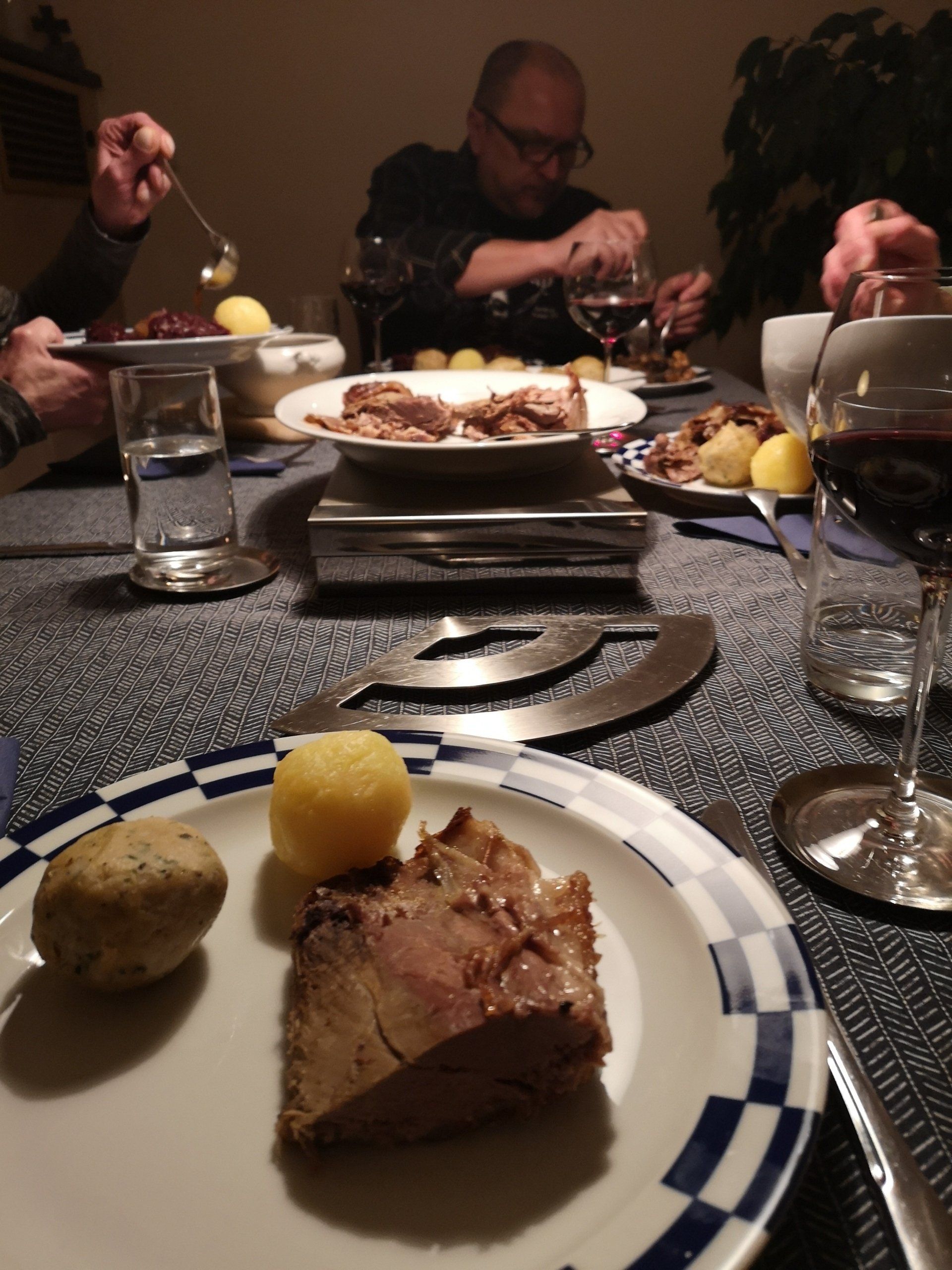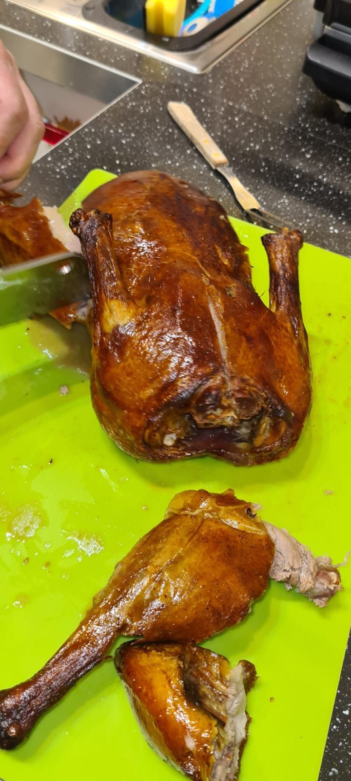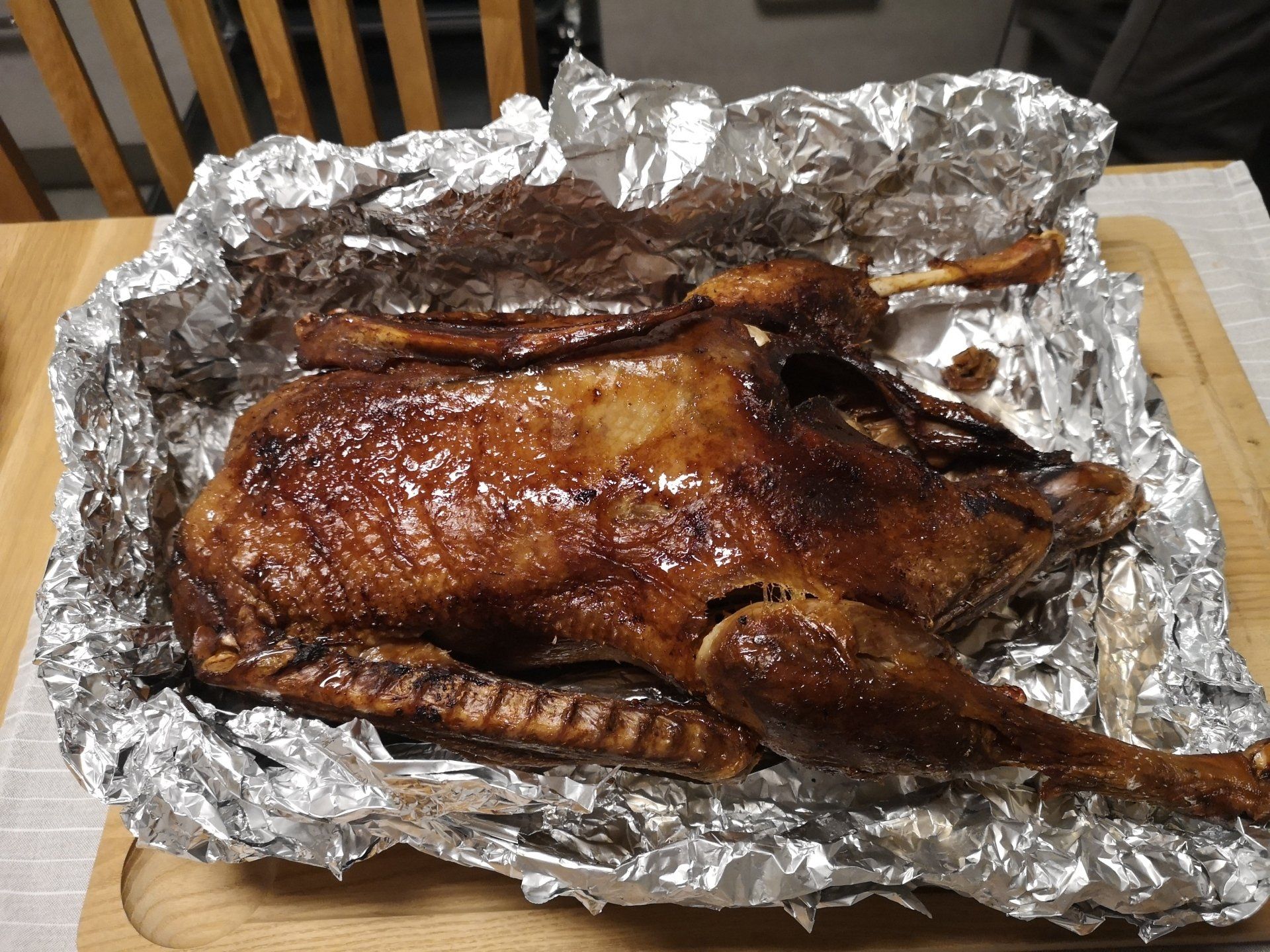 Endlich war es dann soweit. Am nachmittag sind wir bei Tina und Martin angekommen. Freudig wurden wir begrüsst, auch von Schlappohr, der sich auch wieder ganz besonders gefreut hat. Zur Begrüssung gab es ein Gläschen Sekt und wie immer gab es erst einmal jede Menge zu erzählen. Dann hat Martin die Gans geholt. Oh, wie sieht das lecker aus. Jetzt erst einmal alles nach Anleitung vorbereiten und dann anrichten. Die schmeckt aber mal richtig lecker. Super Idee und super lecker. Und das zu Zeiten von Corona.