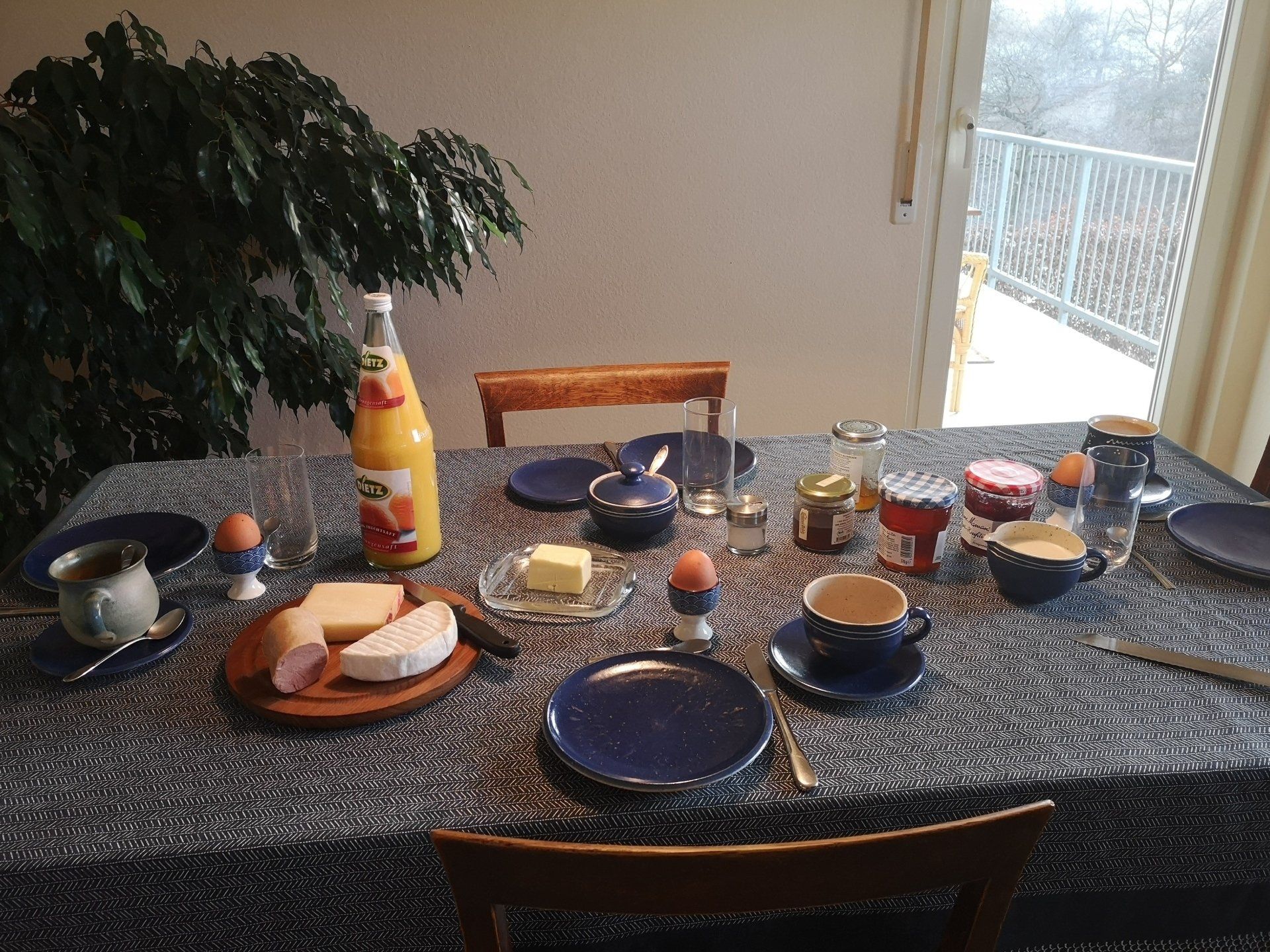 Morgens ist es so schön, dass wir natürlich noch draussen frühstücken. Sollen wir jetzt wirklich schon heimfahren? Können wir nicht noch ein bisschen bleiben? Wir können.