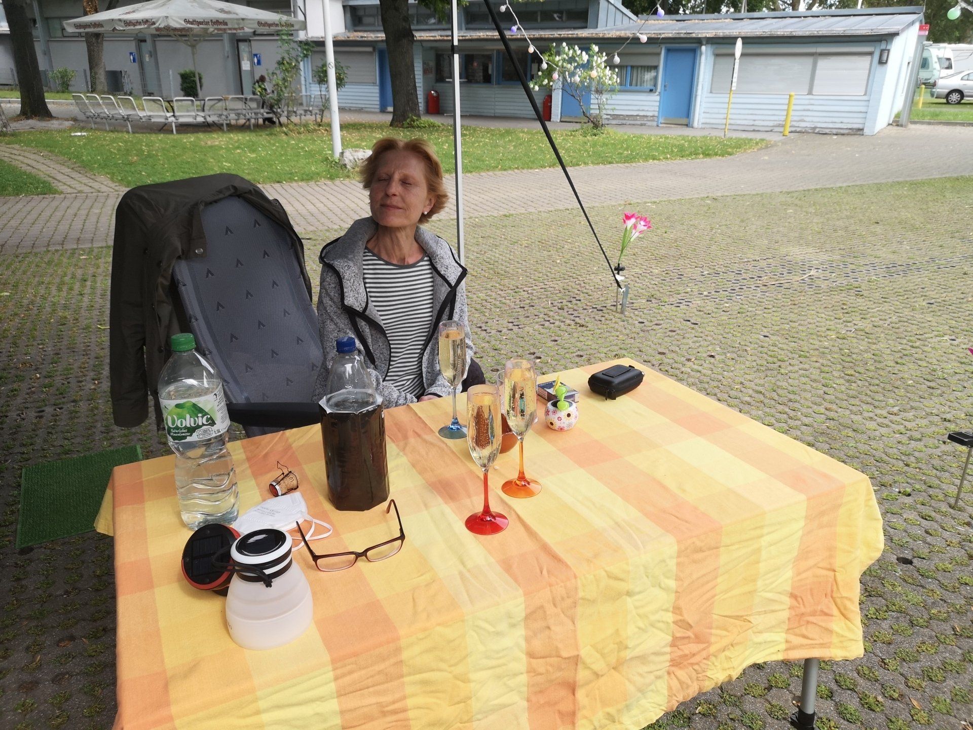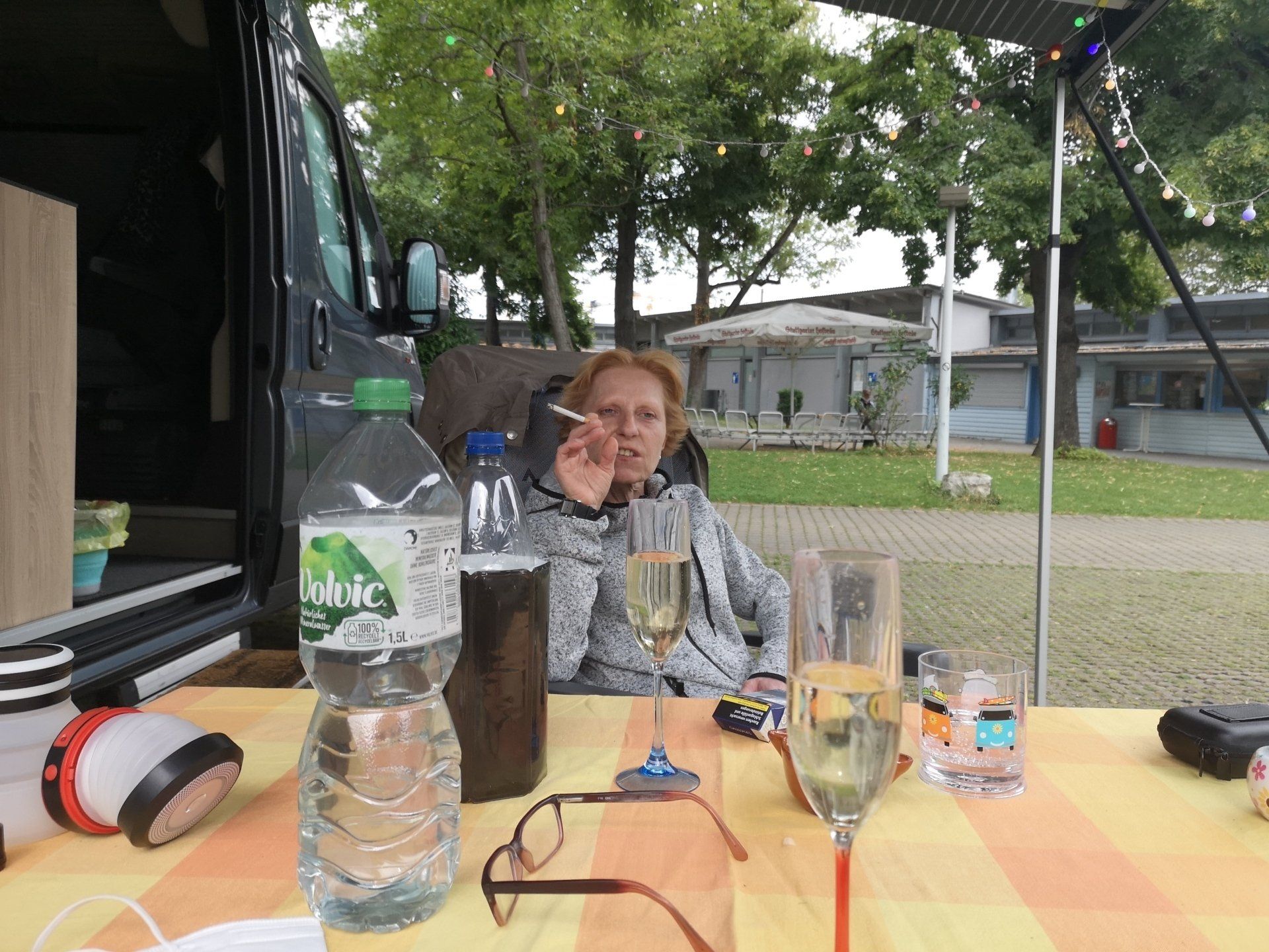 Bei einem Gläschen Sekt - Corona Killer natürlich - verging die Zeit dann wie im Fluge bis Hansi gekommen ist, um uns noch die Markise aufzubauen. Er hat natürlich auch noch ein Gläschen abbekommen und dann war wieder genügend Zeit zum Quatschen, Lachen und die gemeinsame Zeit zu geniessen.