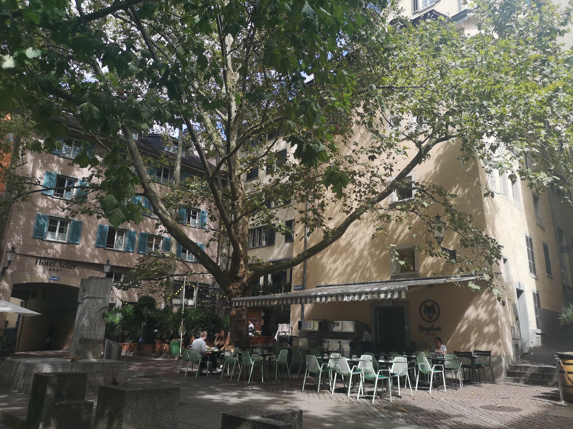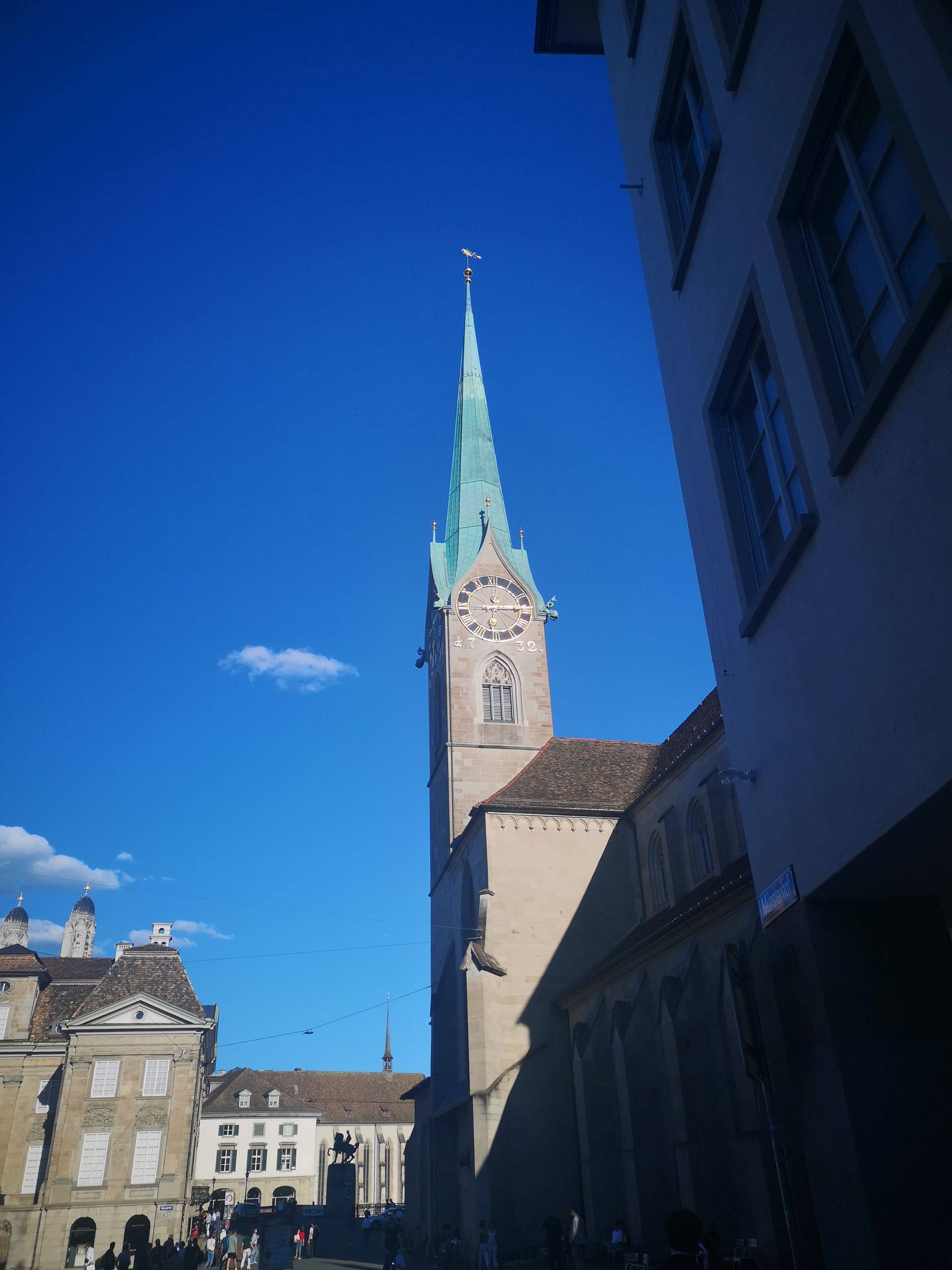 Im Anschluss hatten wir eine Stadtführung durch die Altstadt. Zuerst ging es zum Grossmünster. Dann über den Zwingliplatz, die Münster- und die Marktgasse wieder zurück an die Limmat. Vorbei am Rathaus haben wir die Limmat überquert. An der Limmat entlang (Schipfe) ging es dann hinauf zum Lindenhof. Von hier aus hat man einen phantastischen Blick auf das Limmatufer.