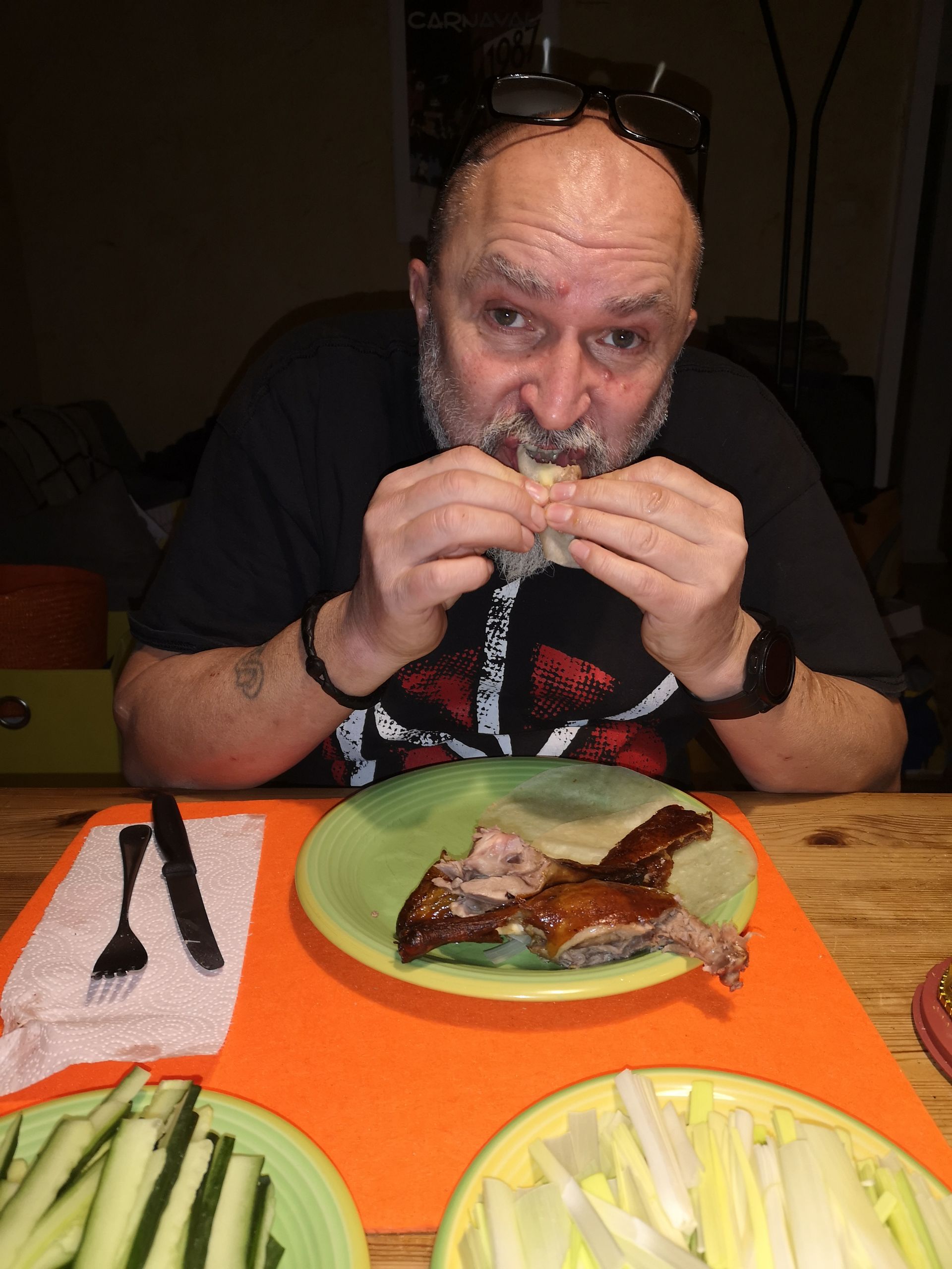 Und dann war es soweit - die Pekingente war fertig und wir konnten unser Festmahl beginnen. Dazu haben wir einen guten Wein noch aus unserem Spanienurlaub