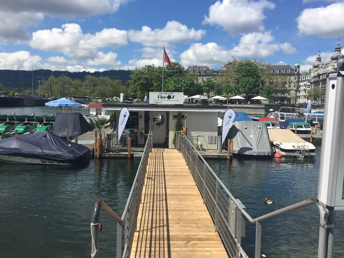 Weiter ging es zur Kirche St. Peter mit einem Abstecher zur belebten Bahnhofstrasse. Unser weiterer Weg hat uns dann zum Münsterhof und zur Kirche Fraumünster gebracht. Über die Münsterbrücke mit einem schönen Blick in Richtung Züricher See und das Frauenbadi - ging es dann wieder auf die andere Seite der Limmat und jetzt war es nicht mehr weit bis zu unserer nächsten Location dem Pier 7, das wir für den restlichen Abend für uns ganz alleine hatten.