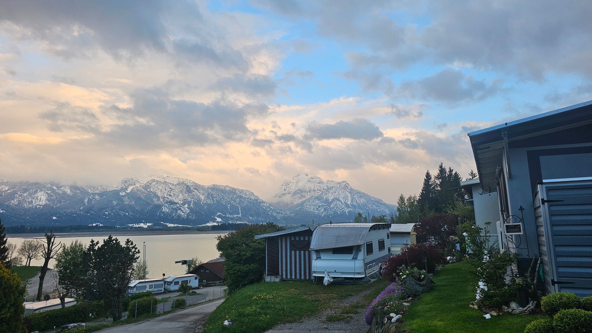 Der Campingplatz "Camping Magdalena" bei Füssen - genauer in Rieden am Forggensee - liegt direkt am Forggensee mit Blick auf Neuschwanstein.