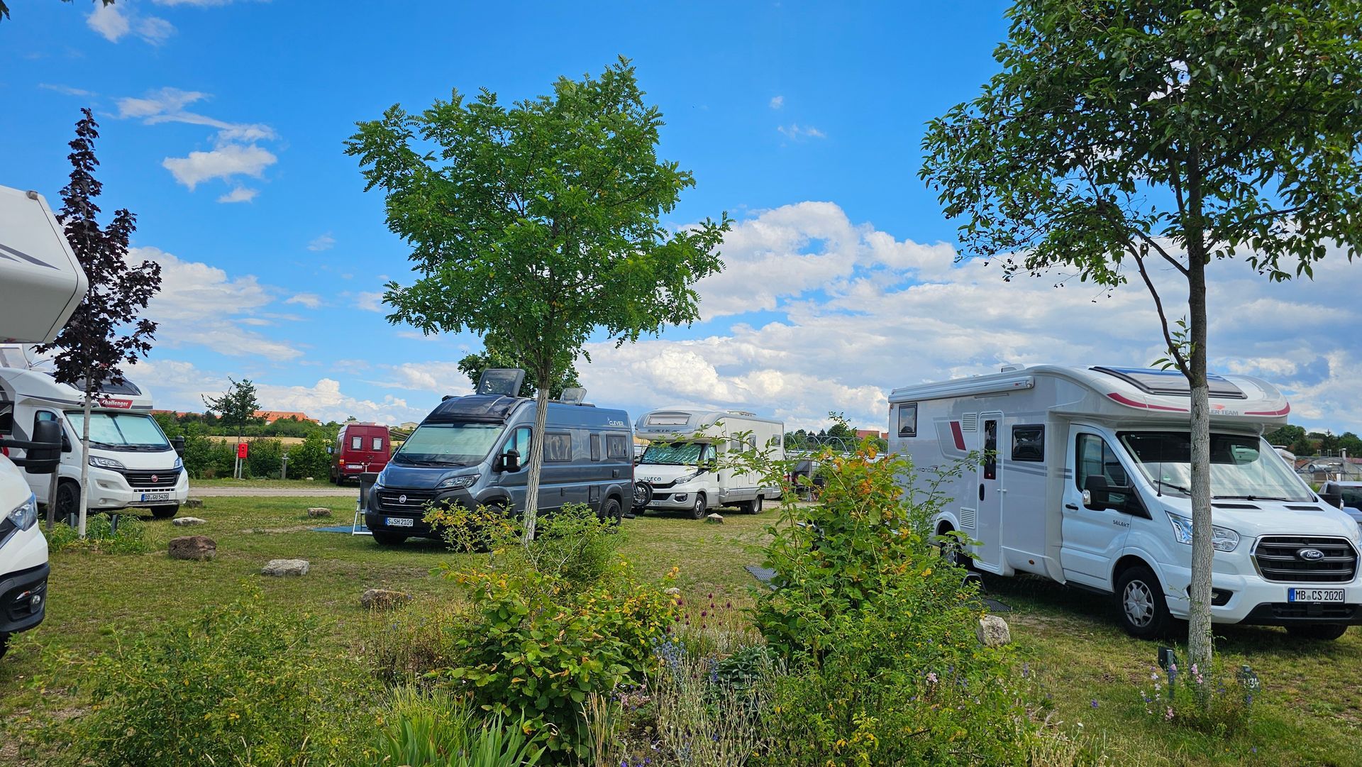 Info: Erfurt hat aber auch einen sehr schönen Wohnmobilstellplatz, der erst 2021 eröffnet wurde - "Tor zur Stadt Erfurt". Der Stellplatz ist nur für Wohnmobile, in der Mitte des Platzes gibt es ein Mehrzweckgebäude mit WC und Duschen, Küche und Aufenthaltsäume sowie Waschmaschinen und Trockner. Man kann reservieren und von hier aus fährt die Strassenbahn direkt zum Domplatz (und zum Bahnhof). Man bezahlt 23 Euro/Nacht, Strom nach Verbrauch und die Beherbergungssteuer der Stadt Erfurt. Der Platz liegt an der Messe und dem egapark. Wir sind nur dran vorbeigefahren, doch sah der Platz sehr ansprechend aus.