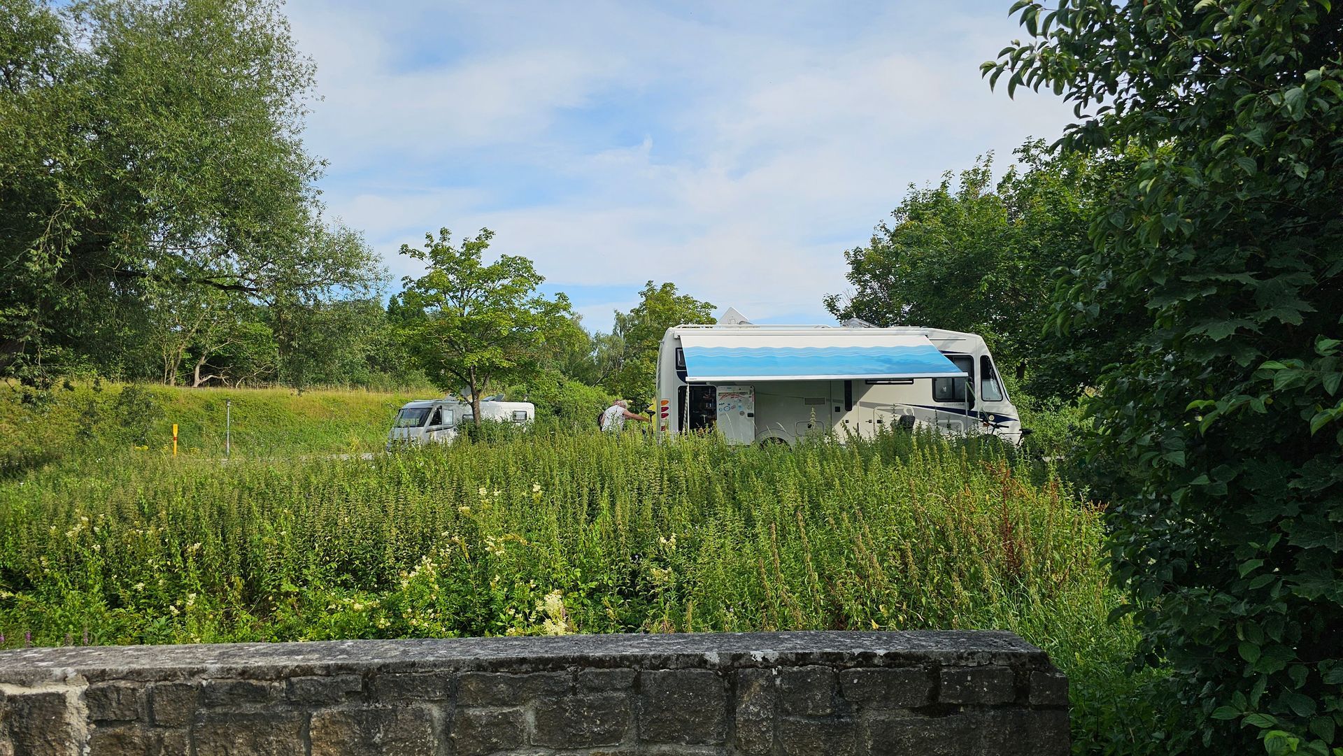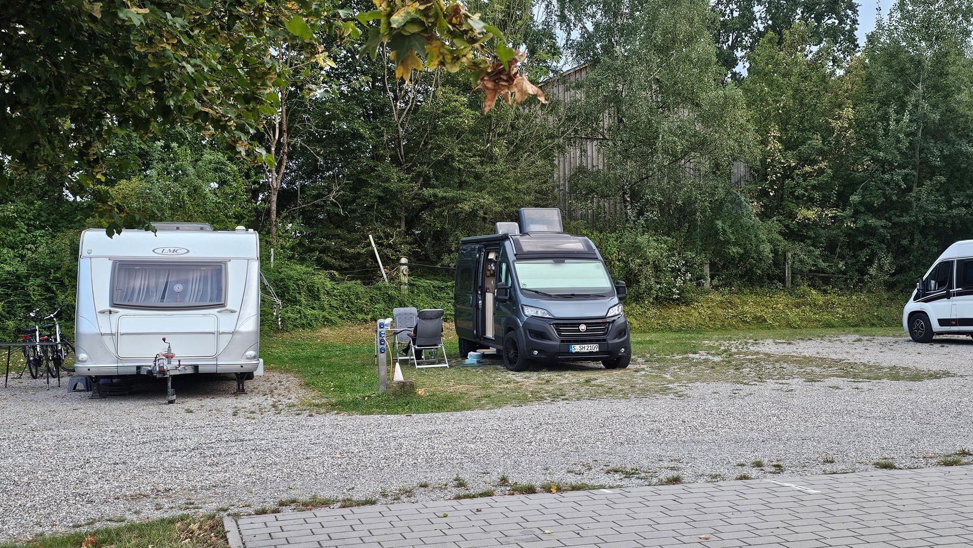 Bad Dürrheim liegt direkt neben der Solemar Therme. Der Stellplatz ist in fünf Bereiche unterteilt: P1 Solemar liegt etwa 200 Meter von den Thermen entfernt und verfügt über knapp 60 Plätze. P2 Park-Oase - dort standen wir - verfügt über 150 Plätze. P3 - Arena - hat 100 Plätze, die aber nur für Clubtreffen oder sonstige Veranstaltungen vorgesehen sind. Dort waren die Bühne, die Anbieter und die Essens- und Getränkestände untergebracht. P4-Park Natur hat 20 parzellierte Plätze (ziemlich eng und ohne Schatten) mit Blick in die Natur und hundefrei. P5 - Park-Weitblick ist ebenfalls parzelliert und ohne Schatten - hier gibt es 16 Plätze. Alle Plätze verfügen über Strom mit 4 Ah. Auf dem Platz gibt es insgesamt 2 Entsorgungsstationen für die Chemie-Toilette und das Grauwasser. Ab 3 Tagen ist eine Reservierung möglich - dafür zahlt man 3 Euro.