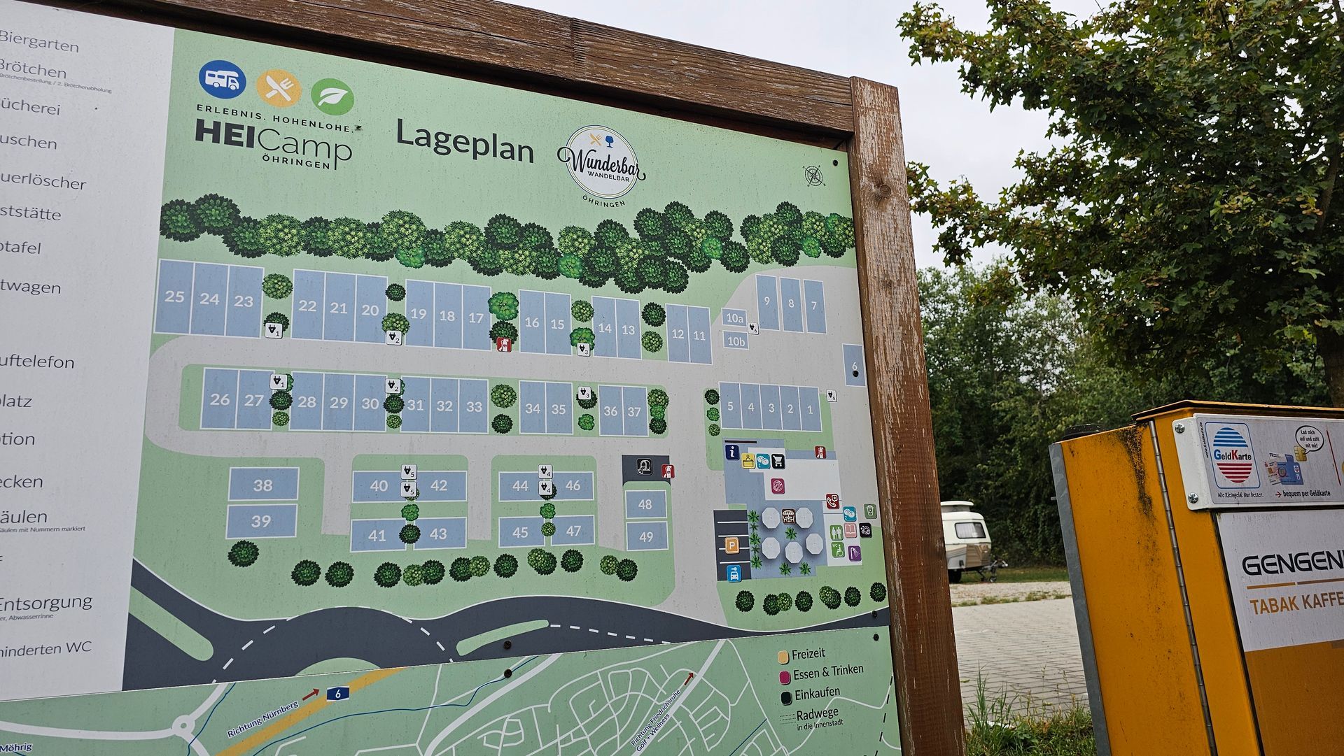 Der "Wohnmobilpark HeiCamp" liegt bei Öhringen in Hohenlohe und eignet sich sowohl als Zwischenstopp in den Urlaub (nur wenige Kilometer bis zur A6) als auch für einen Kurzurlaub, um Hohenlohe zu erkunden. Die Bushaltestelle befindet sich direkt am Campingplatz. Es gibt insgesamt 50 Plätze mit ausreichend Platz zum Nachbarn und der Möglichkeit, die Markise auszufahren und Tisch und Stühle rauszustellen. Für einen Stellplatz ist er wirklich komfortabel: Es gibt Brötchenservice, ein sauberes WC, richtig tolle Duschen (gegen Gebühr -3 Euro/Tag) und man kann sich sogar ein eigenes Badezimmer für 12 Euro dazumieten. Es gibt einen Gasflaschenservice, Strom kostet 80 Cent/kWh (an der Stromsäule zu bezahlen), Wasser kostet 1 Euro/100 Liter, WLAN 2 Euro/Tag. Entsorgung ist kostenlos. Am Platz stehen grosse Waschmaschinen und Trockner zur Verfügung.