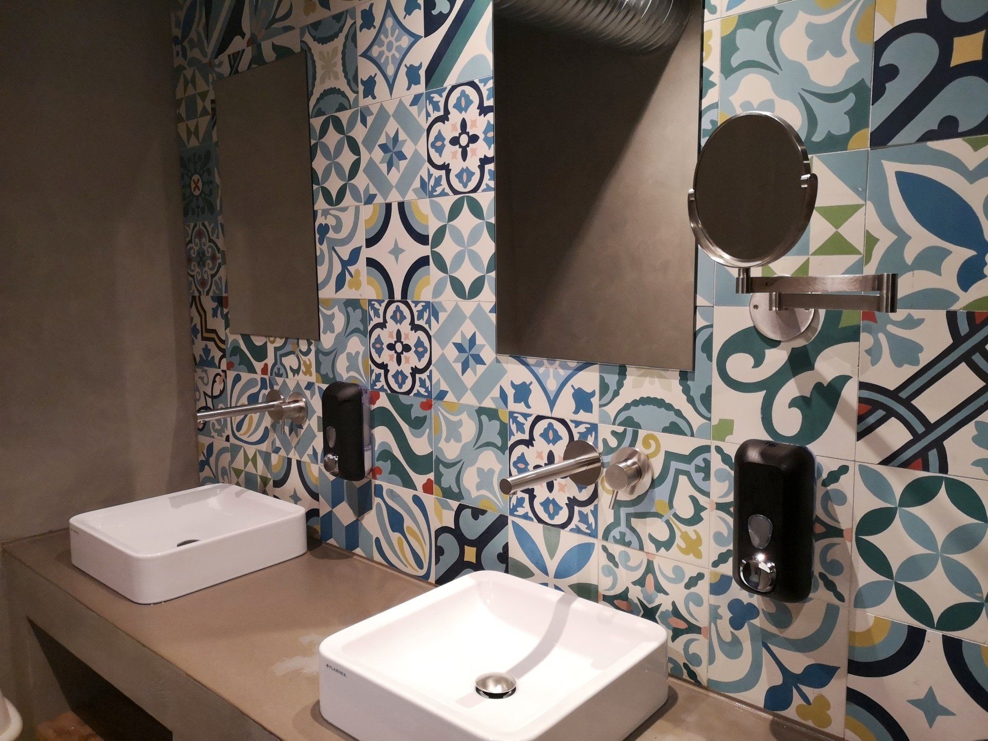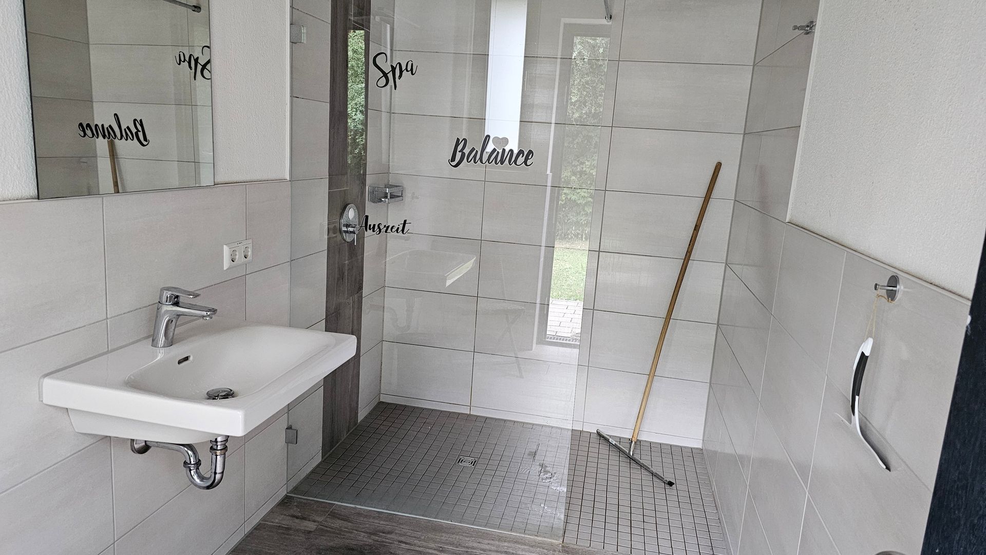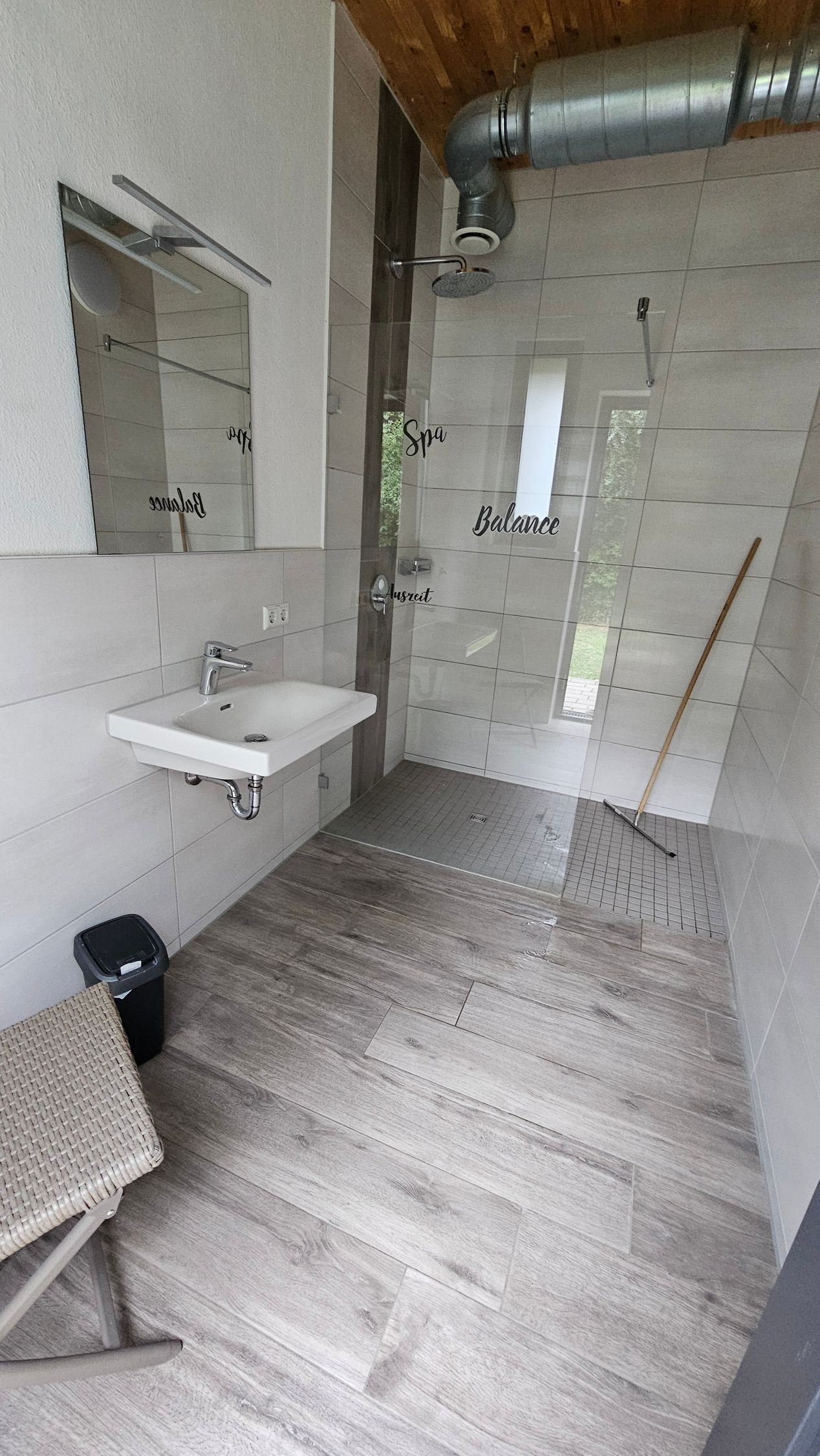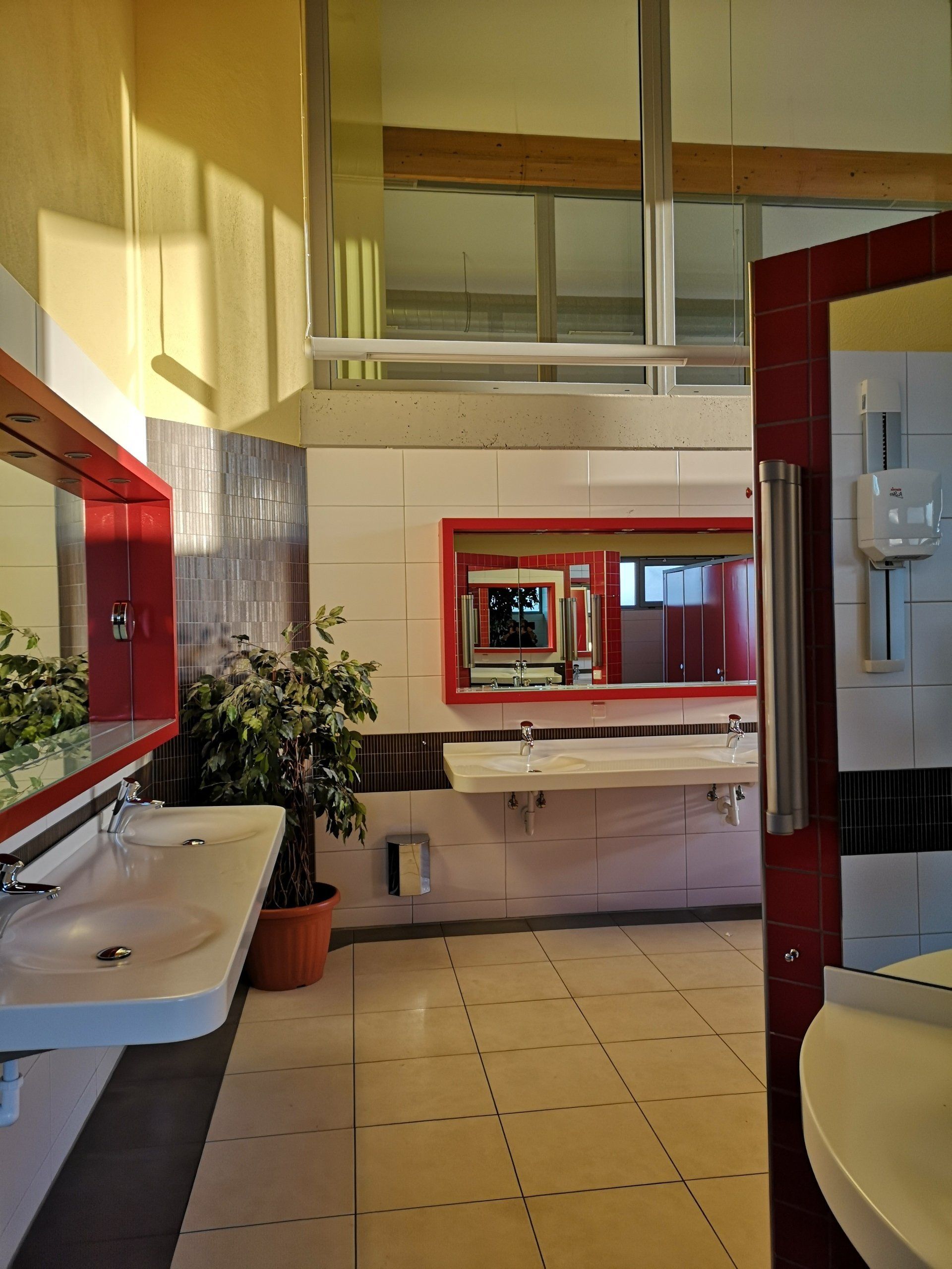 Was uns aber wirklich beeindruckt hat, waren die Sanitärräume. Klar, es gibt mehrere Toiletten, Duschen und einen Spülraum. Doch das einem sofort ins Auge sticht, sind die schönen Fliesen und das Styling. Dabei gibt es für Damen und Herren je eine eigene grosse Dusche mit Waschbecken und Fön. Und dann gibt es noch den "Duschraum", der gemeinsam genutzt wird. Das heisst, es gibt 5 abschliessbare grosse Duschen mit Regenwalddusche und viel Platz zum Umziehen. Davor ist der Raum mit Waschbecken und Fön, der gemeinsam genutzt wird. Aber wirklich sehr schön gestylt. Deshalb muss ich da auch noch ein paar Bilder dazu reinsetzen.