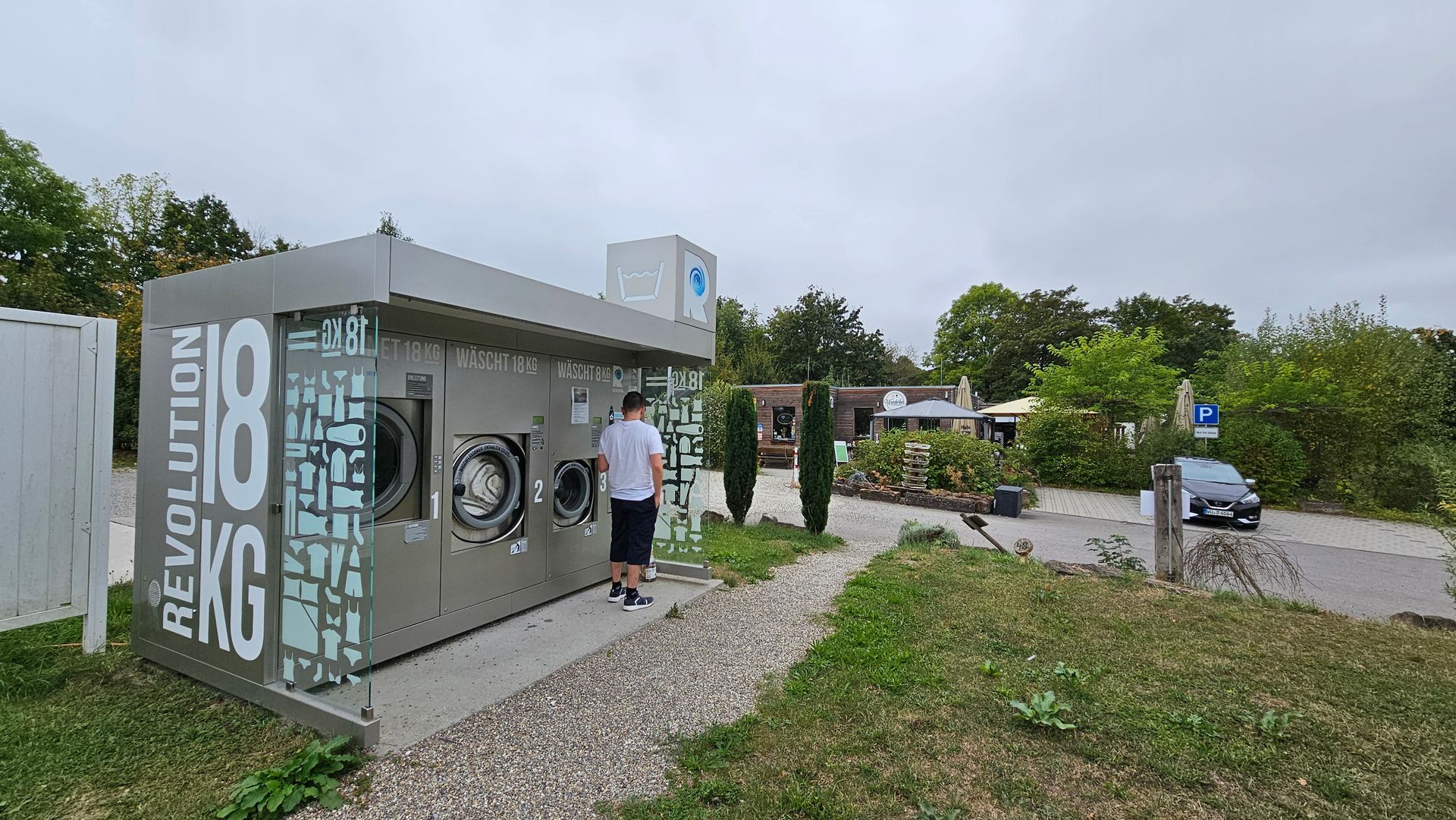 Waschmaschinen und Trockner sind vorhanden und kosten je 4 Euro. Die Jetons bekommt man im Minimarkt.