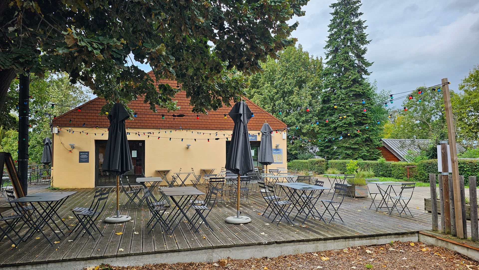 Das Gelände ist sehr schön angelegt: Liegewiesen, Spielplatz, ein kleiner Imbiss, eine SUP-Mietstation und auch eine E-Bike.Mietstation.