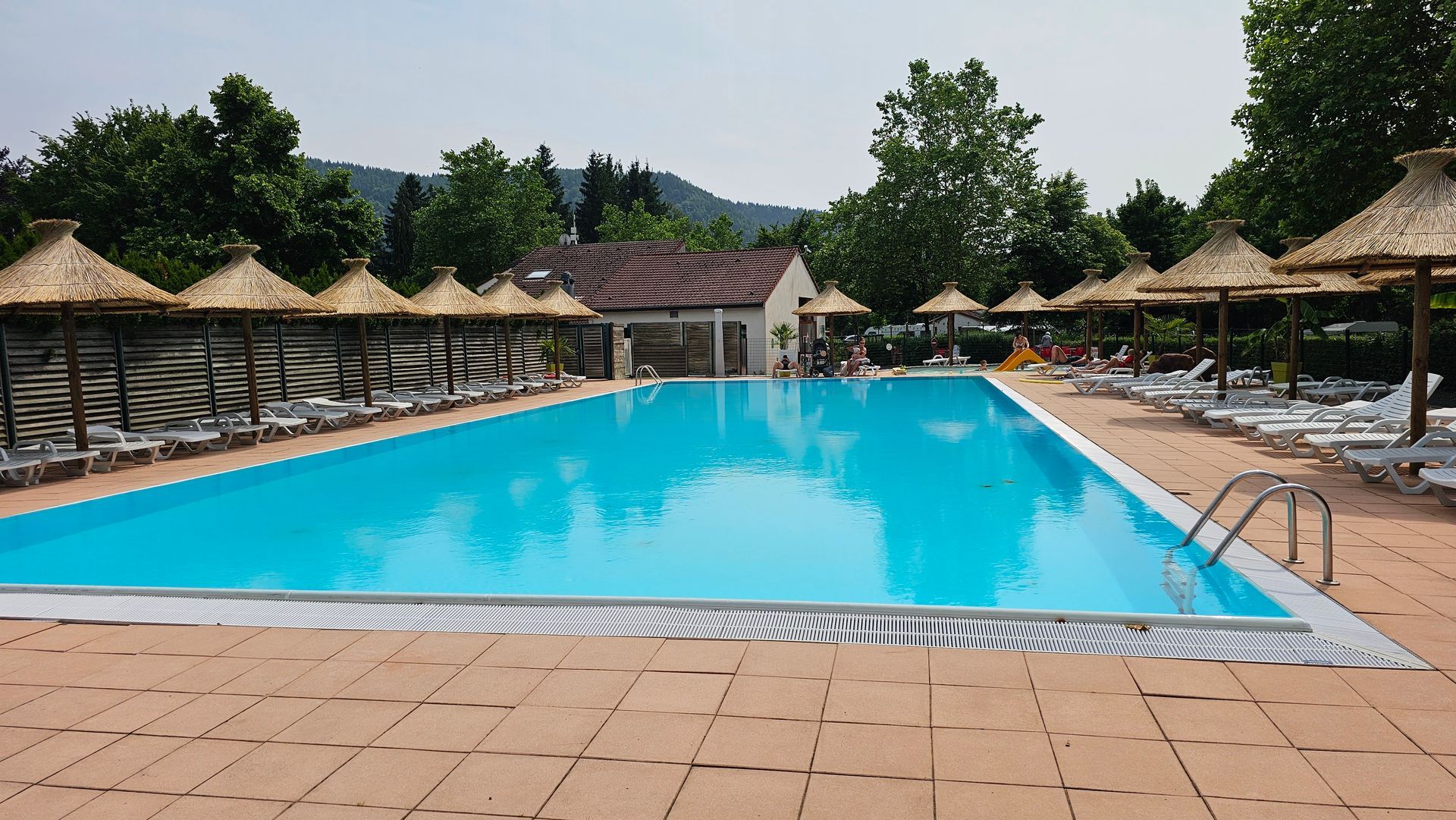 Der "Camping Markushof" ist ein Campingplatz für Erwachsene ohne Hund. Kinder unter 16 Jahren sind nicht zugelassen. Das wussten wir nicht, als wir den Platz für die Durchreise ausgewählt haben. Aber es war schon angenehm ruhig hier. Zum Campingplatz gehört auch ein Hotel (oder umgekehrt). Der Platz verfügt über 56 Plätze auf Kiess mit Strom und Wasseranschluss. Duschen und Toiletten befinden sich im Untergeschoss im ehemaligen Spa-Bereich (?). Für die Hotel- und Campinggäste steht ein solarbeheiztes Schwimmbecken zur Verfügung. Eine Entsorgung für Grauwasser und Toilette ist auch vorhanden.