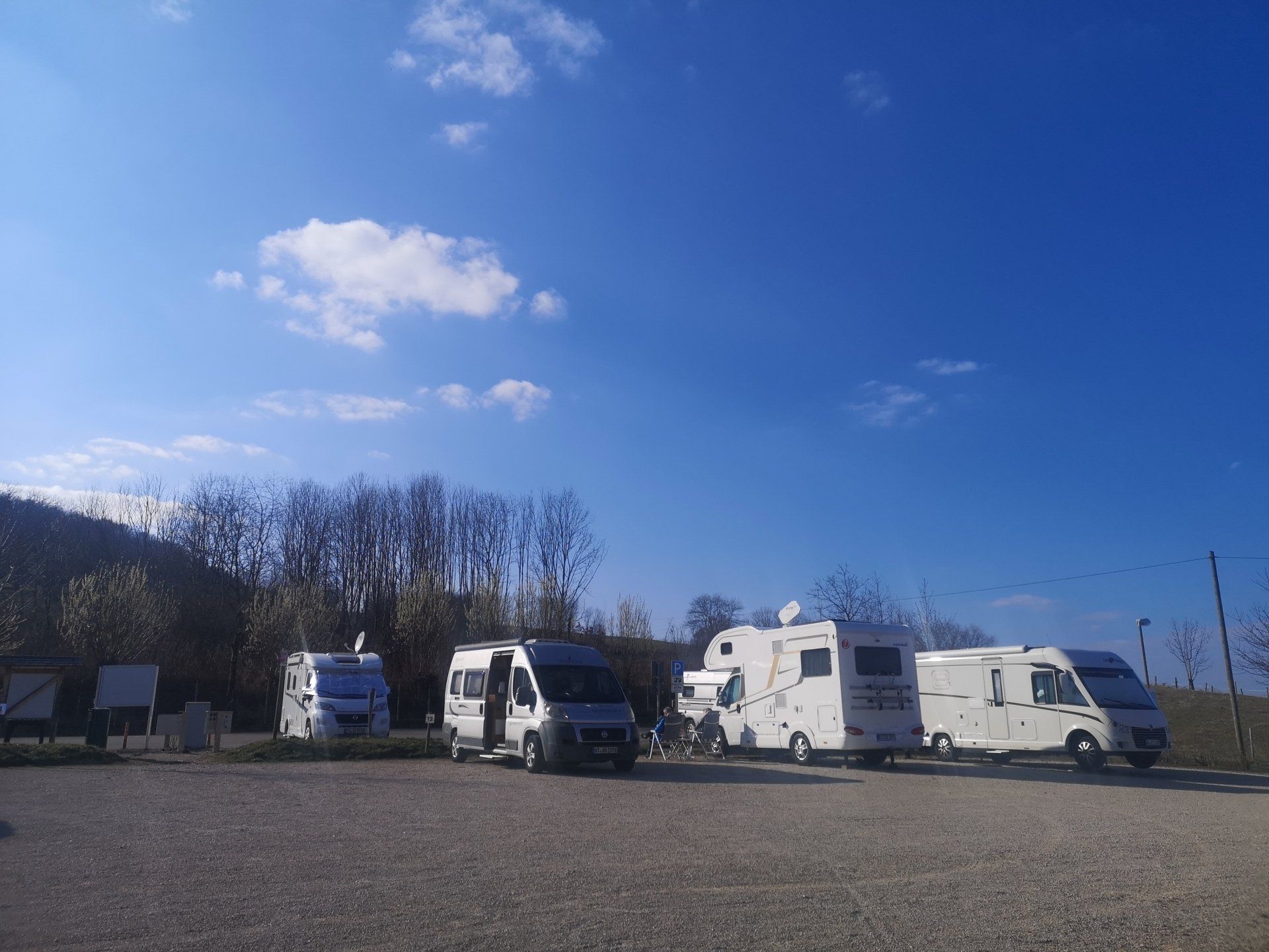 gar nicht extra erwähnt. Auf dem Platz können etwa 15 Camper stehen. Auf Anfrage kann Strom zur Verfügung gestellt werden. Wasser kann man am Hof auffüllen. Der Platz kostet laut ProMobil 5 Euro. Wir haben im Besen gegessen und mussten so nichts bezahlen.