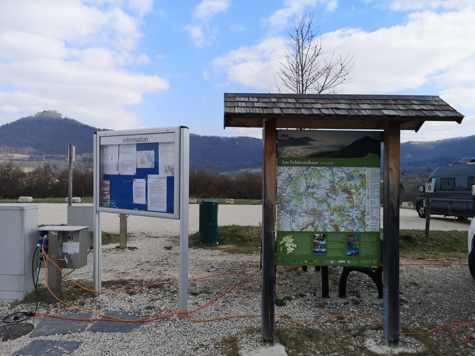 Hinter dem Parkplatz gibt es anscheinend auch Stellplätze, doch die waren Mitte Mai (noch?) nicht geöffnet.