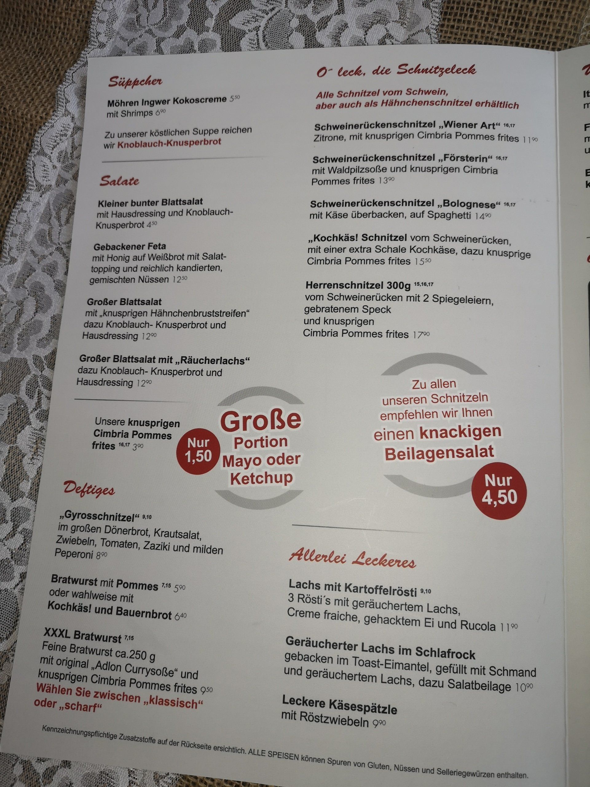 Die Gaststätte hat eine kleine Karte, aber alles ist selber gemacht, so richtige "Mutti-Küche". Es gibt aber auch einen tollen Salatteller. Brötchen gibt es manchmal - ansonsten ist der Bäcker oben im Dorf. Der Saale-Radweg führt am Ort vorbei.
