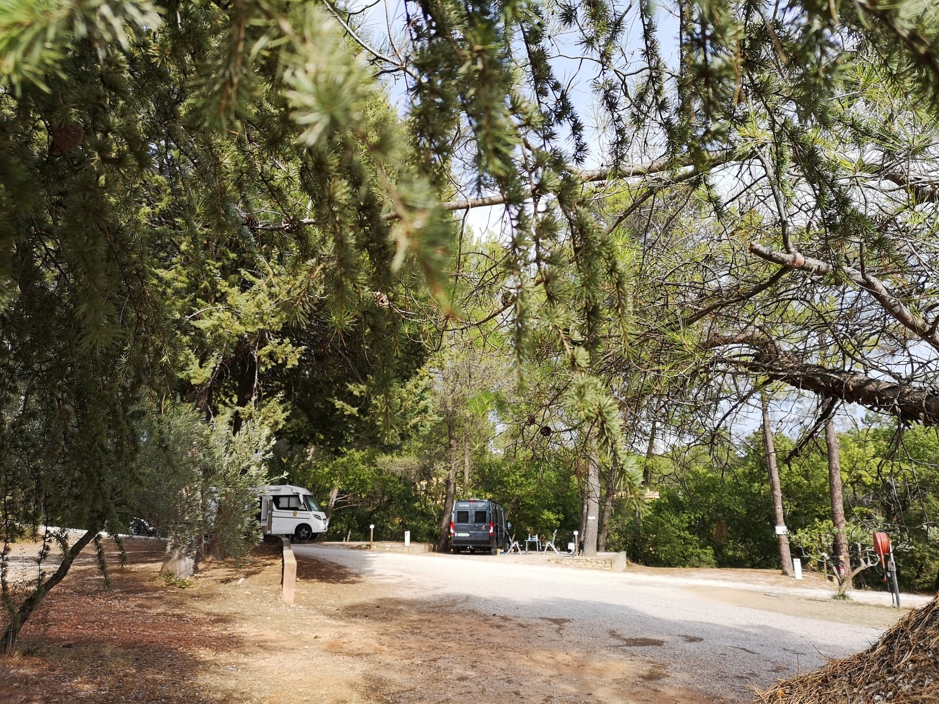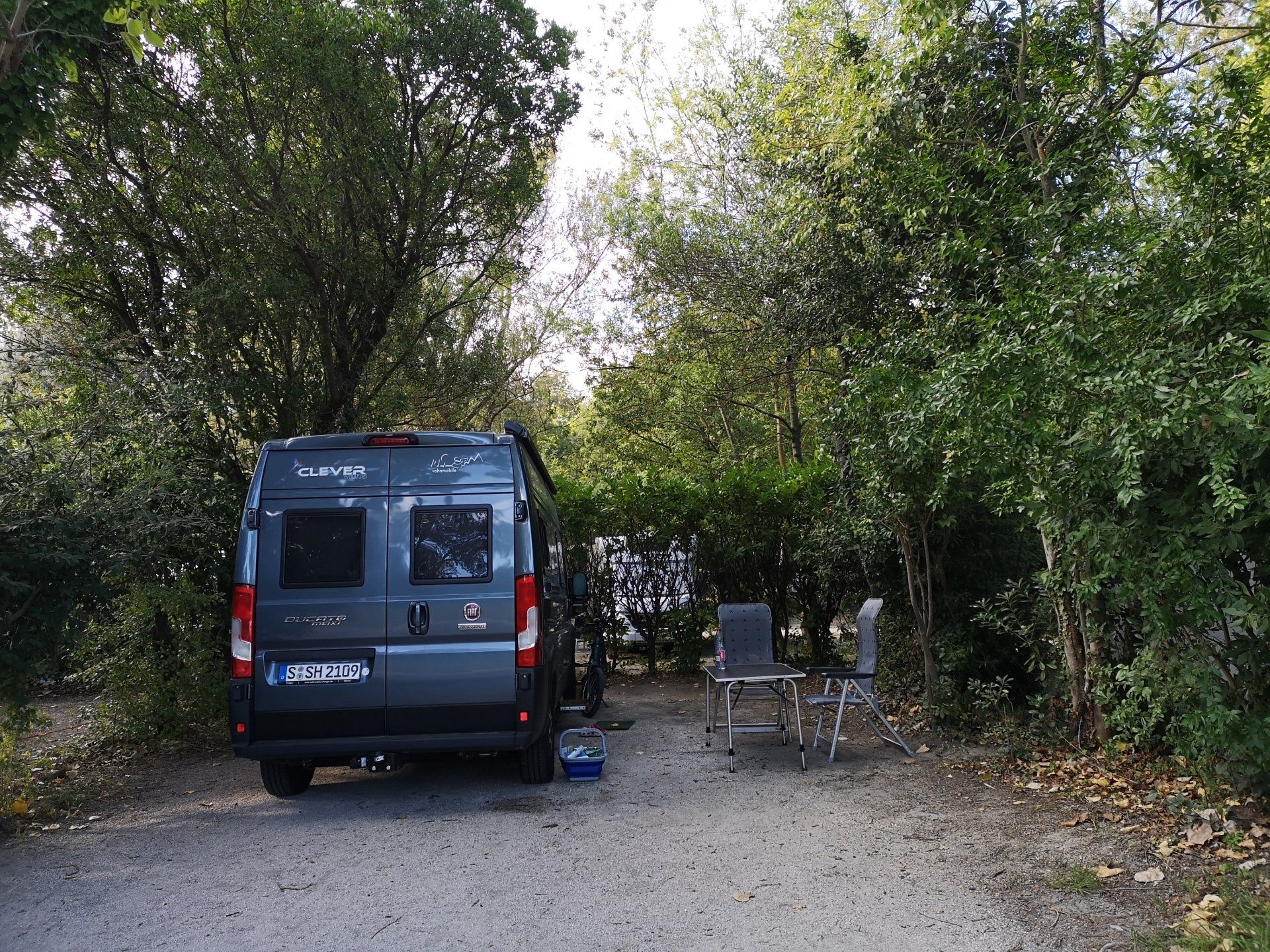 Laut Homepage kann man den Platz erst ab 4 Übernachten reservieren und in der Hauptsaison gibt es eine Mindestbelegung von 2 Personen. Geöffnet hat der Platz von Anfang April bis Anfang November. Von der Rezeption geht es recht steil hinab zu den Plätzen. Bei grossen Mobilen würde ich vorher nachfragen, ob das geht.