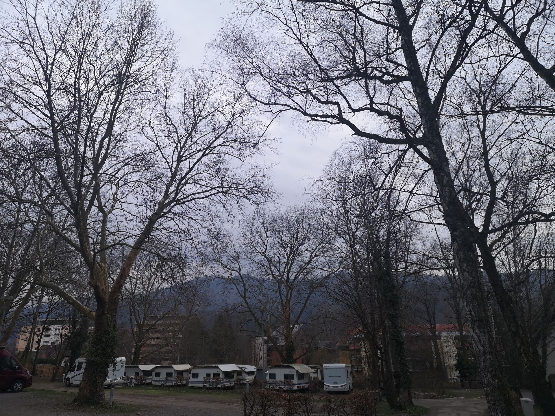 Der Platz selber liegt mitten im Ort - hinter dem Campingplatz ist eine kleine Shopping-Mall mit einem grossen Supermarkt, vor dem Platz verläuft die Haupstrasse, die uns aber gar nicht gestört hat. Die Haltestelle für den Stadtbus ist gleich beim Campingplatz.