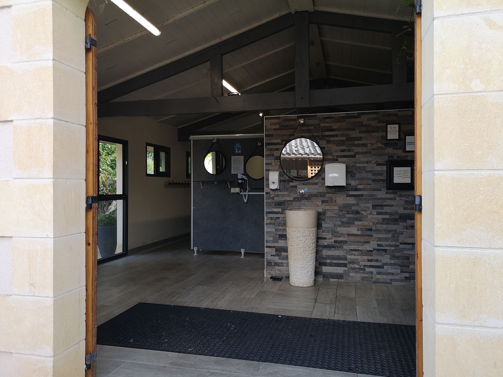 An der Rezeption kann man lokalen Wein und Produkte kaufen. Die Sanitäranlagen sind sehr schön und sauber.